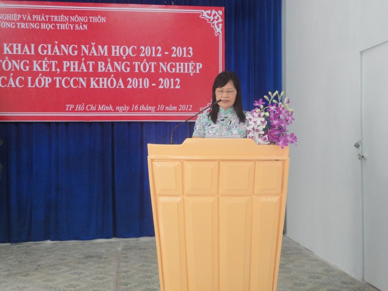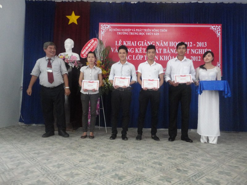 Lúc 8h30 ngày 16/11/2012, tại Hội trường chính Trường Trung học Thủy sản đã tổ chức Lễ Khai giảng năm học 2012-2013 và Tổng kết phát bằng Tốt nghiệp cho các lớp TCCN khóa 2010-2012.