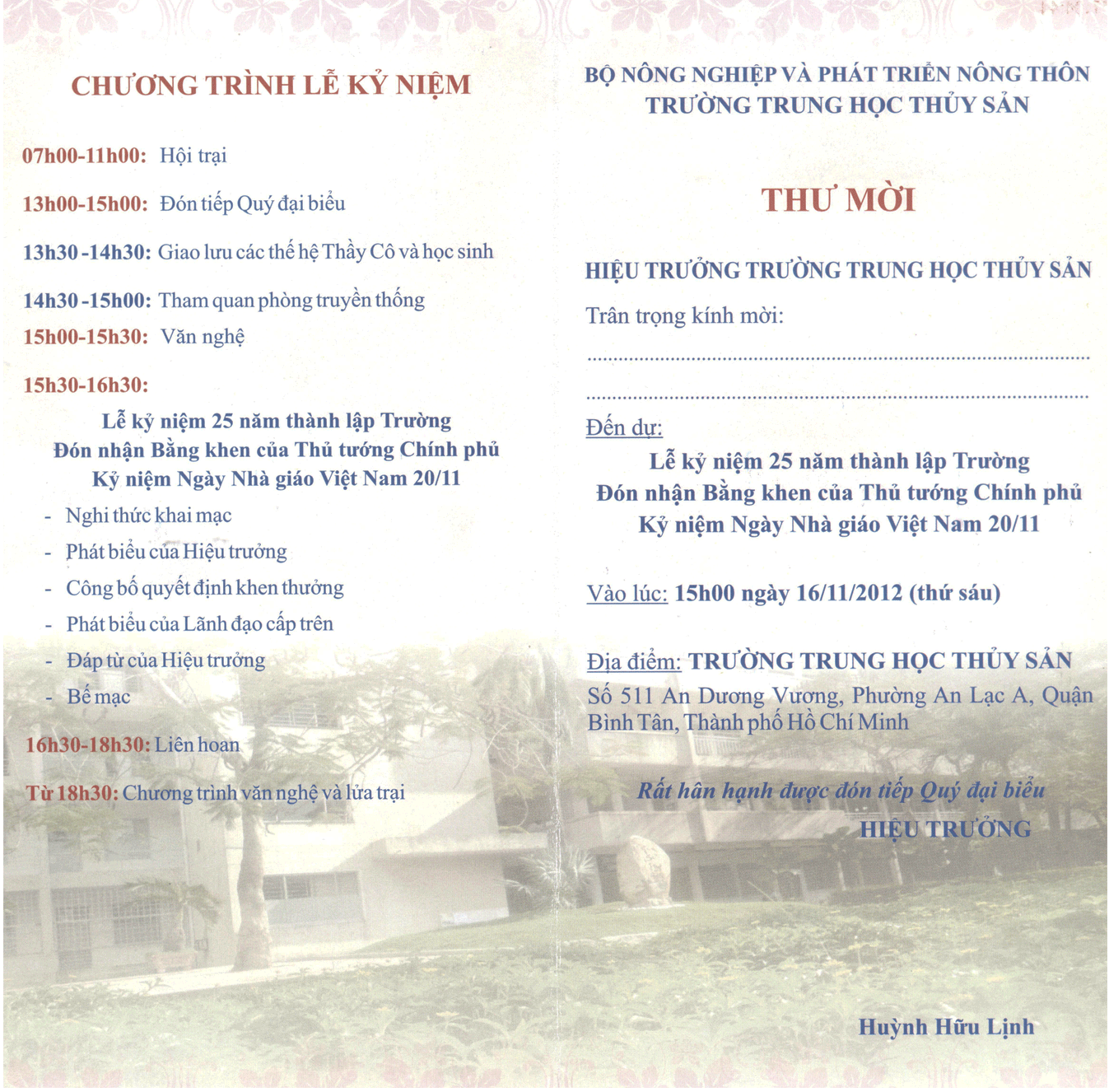 HIỆU TRƯỞNG Huỳnh Hữu Lịnh |
