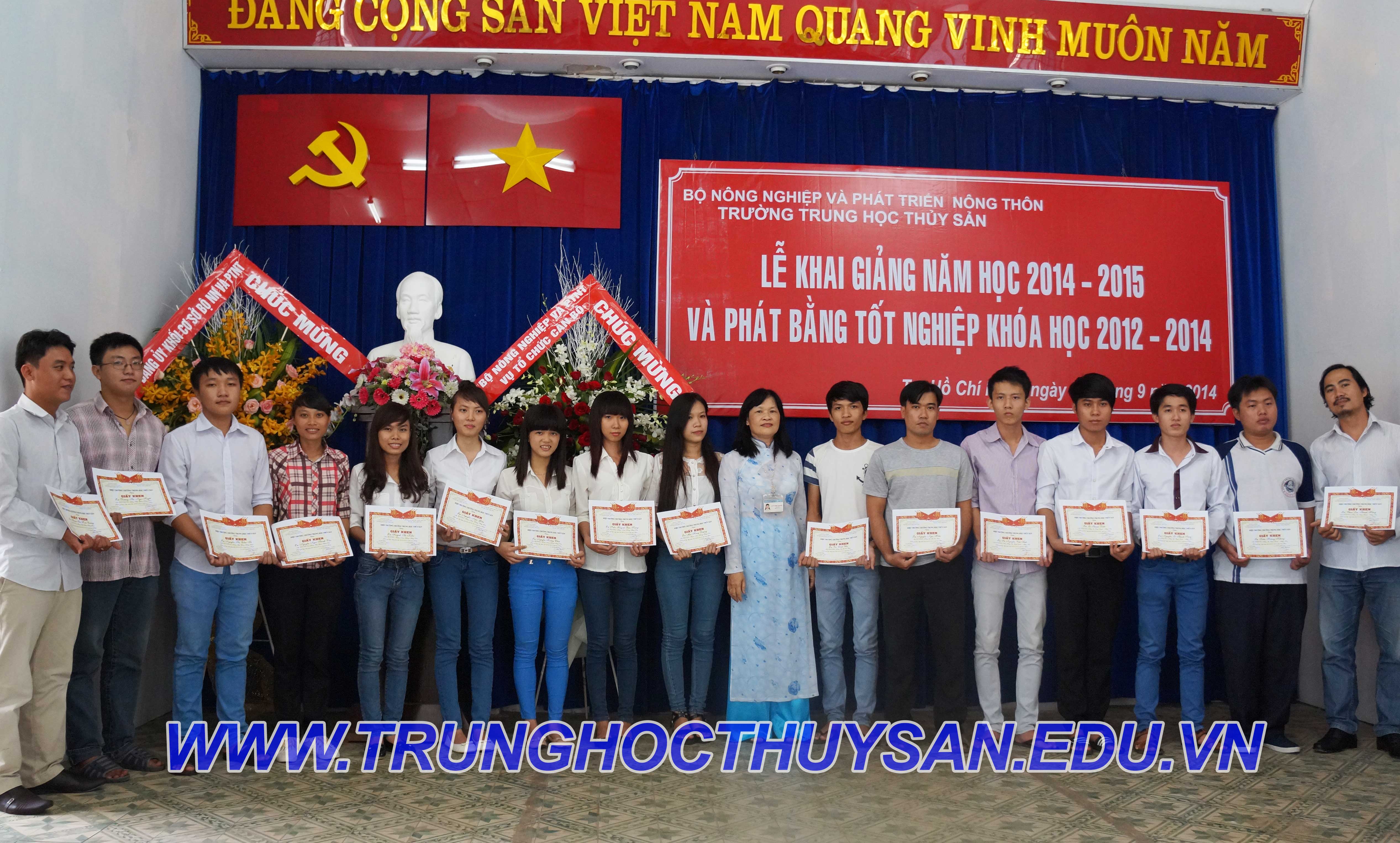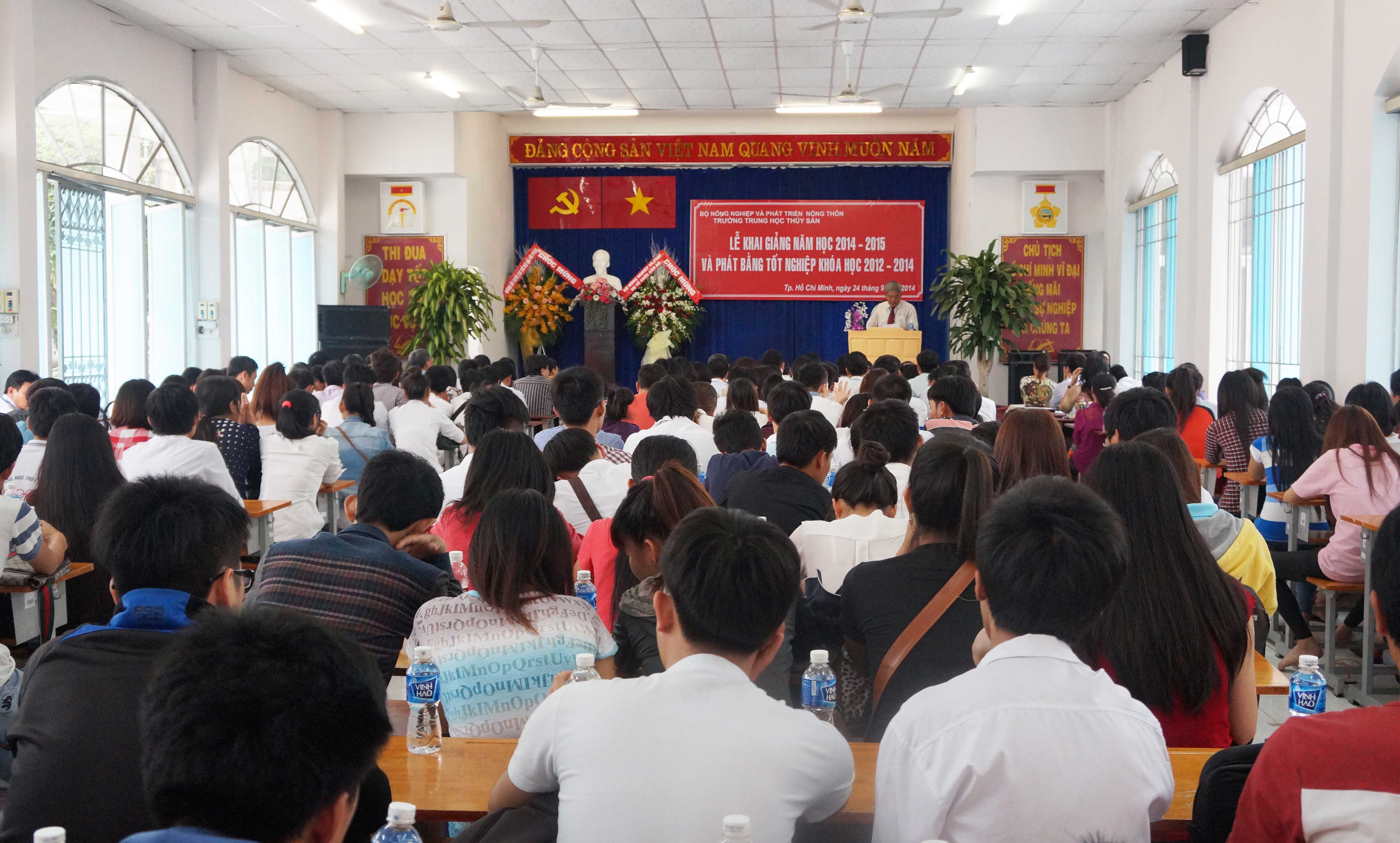 Sáng ngày 24/9/2014, tại hội trường lớn Trường Trung học Thủy sản đã long trọng tổ chức lễ khai giảng năm học mới 2014-2015. Đồng thời nhà trường cũng tổ chức lễ phát thưởng cho những học sinh có thành tích học tập tốt trong năm học qua. Ngoài ra, Trường cũng tiến hành Lễ trao bằng Tốt nghiệp Trung cấp chuyên nghiệp chính quy cho các bạn Khóa 29, Khóa 29V và Khóa 28 hệ 3 năm.