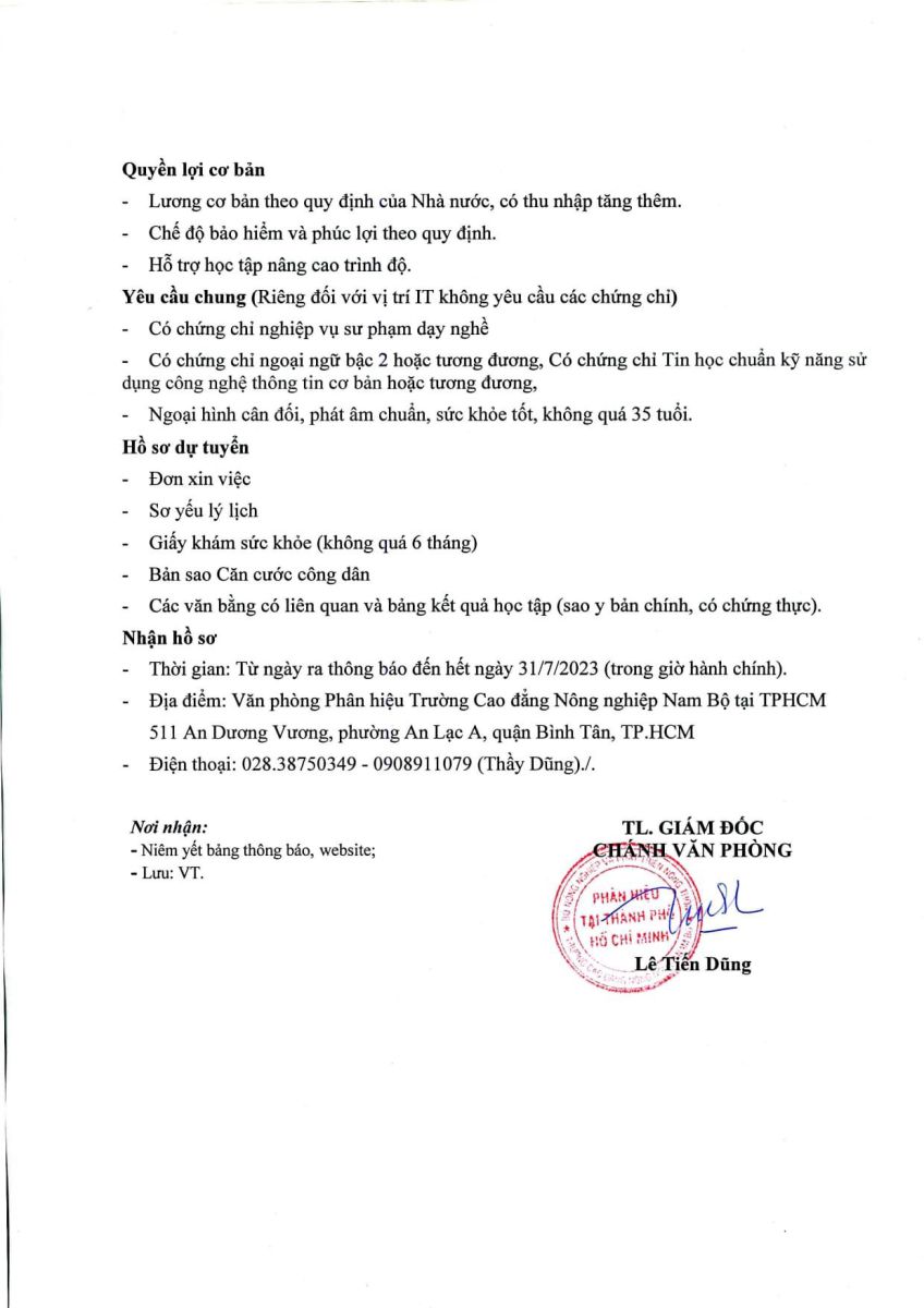 Trường Cao đẳng Nông nghiệp Nam bộ - Phân hiệu Thành phố Hồ Chí Minh Địa chỉ: 511 An Dương Vương, Phường An Lạc, Thành phố Hồ Chí Minh - ĐT: 028.3875.0349 - Fax: 028.3875.4004 - www.nbach.edu.vn
