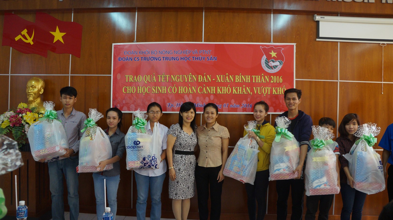 Ngày 20/01/2016, tại Trường Trung học Thủy sản, Đoàn khối Bộ Nông nghiệp và Phát triển nông thôn phối hợp cùng Đoàn Trường Trung học Thủy sản tổ chức trao quà Tết cho các em học sinh có hoàn cảnh khó khăn và vượt khó học tốt trong học tập và có nhiều hoạt động đoàn tích cực. Đây là hoạt động thường niên của Đoàn khối và Đoàn Trường nhằm động viên các em học sinh tiếp tục nổ lực hơn nữa trong học tập và sinh hoạt đoàn.