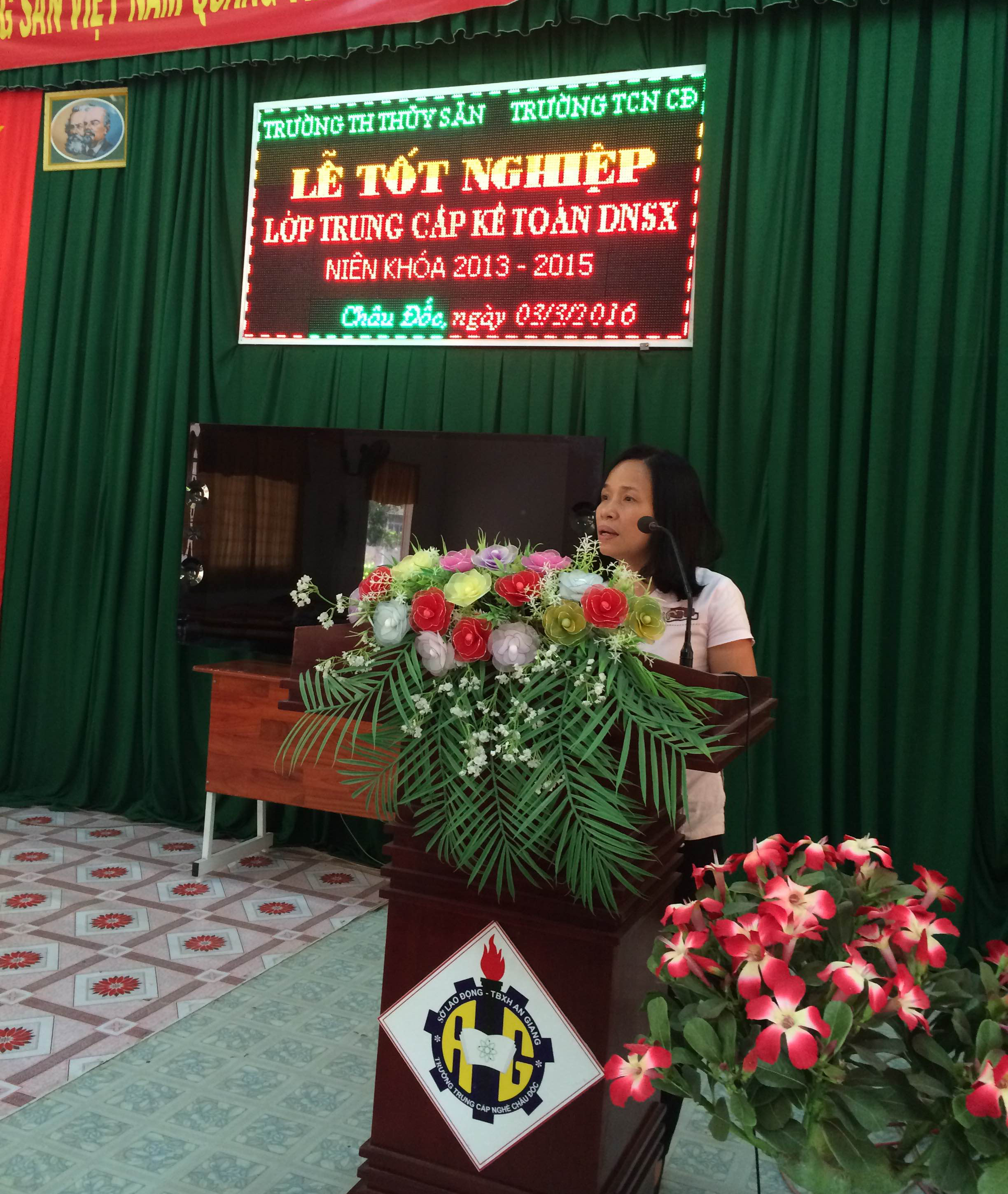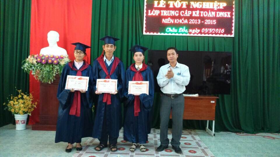 Ngày 03/3/2016, Trường Trung học Thủy sản phối hợp với Trường Trung cấp nghề Châu Đốc làm lễ bế giảng lớp Kế toán doanh nghiệp hệ trung cấp niên khóa 2013 - 2015 và trao bằng tốt nghiệp cho các em học sinh của trường. Đến tham dự có Bà Nguyễn Trọng Ánh Tuyết, Bí thư chi bộ, Hiệu trưởng Trường Trung học Thủy sản, Ông Trịnh Minh Tuấn, Phó Hiệu trưởng trường Trung cấp nghề Châu Đốc.