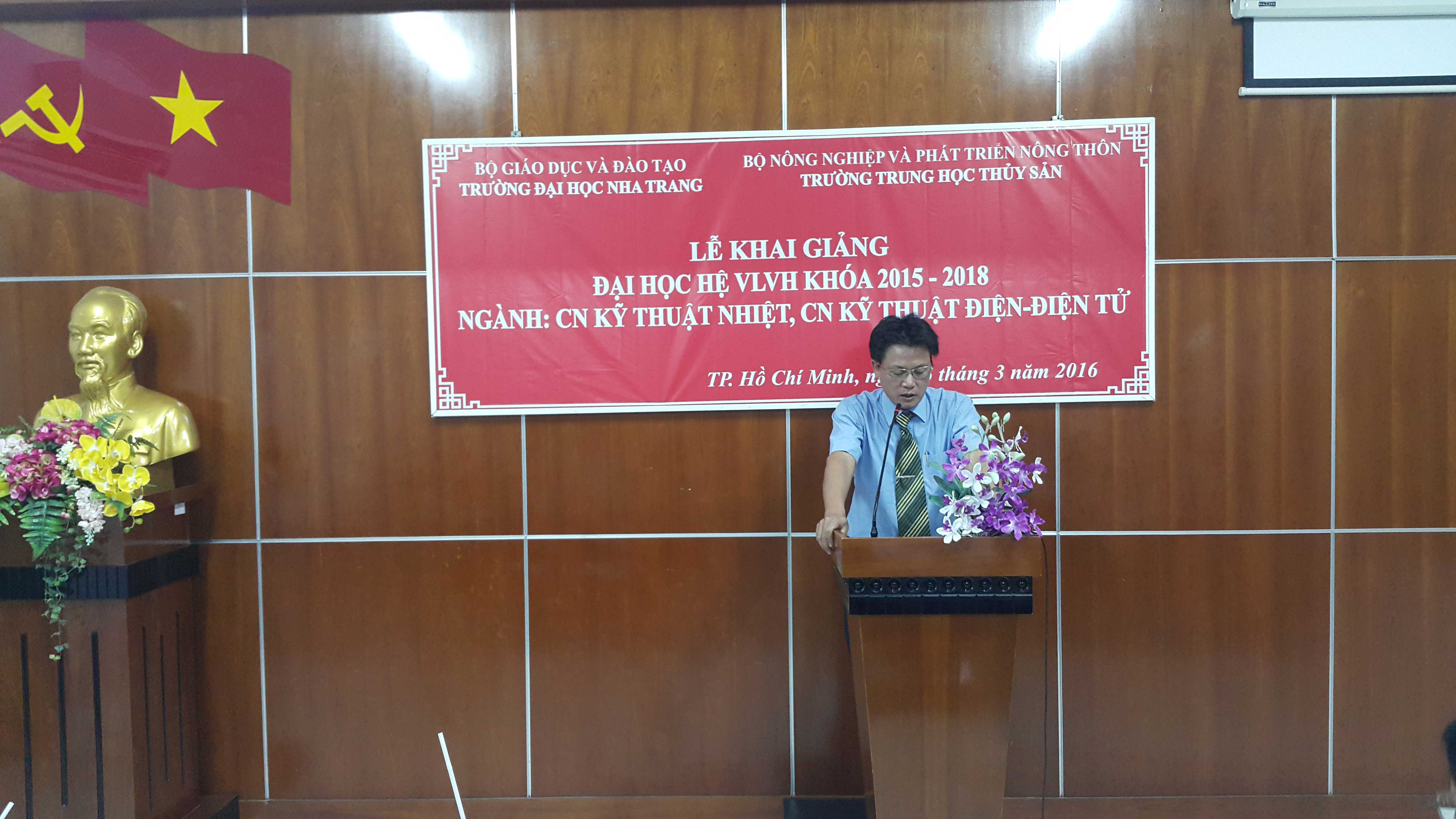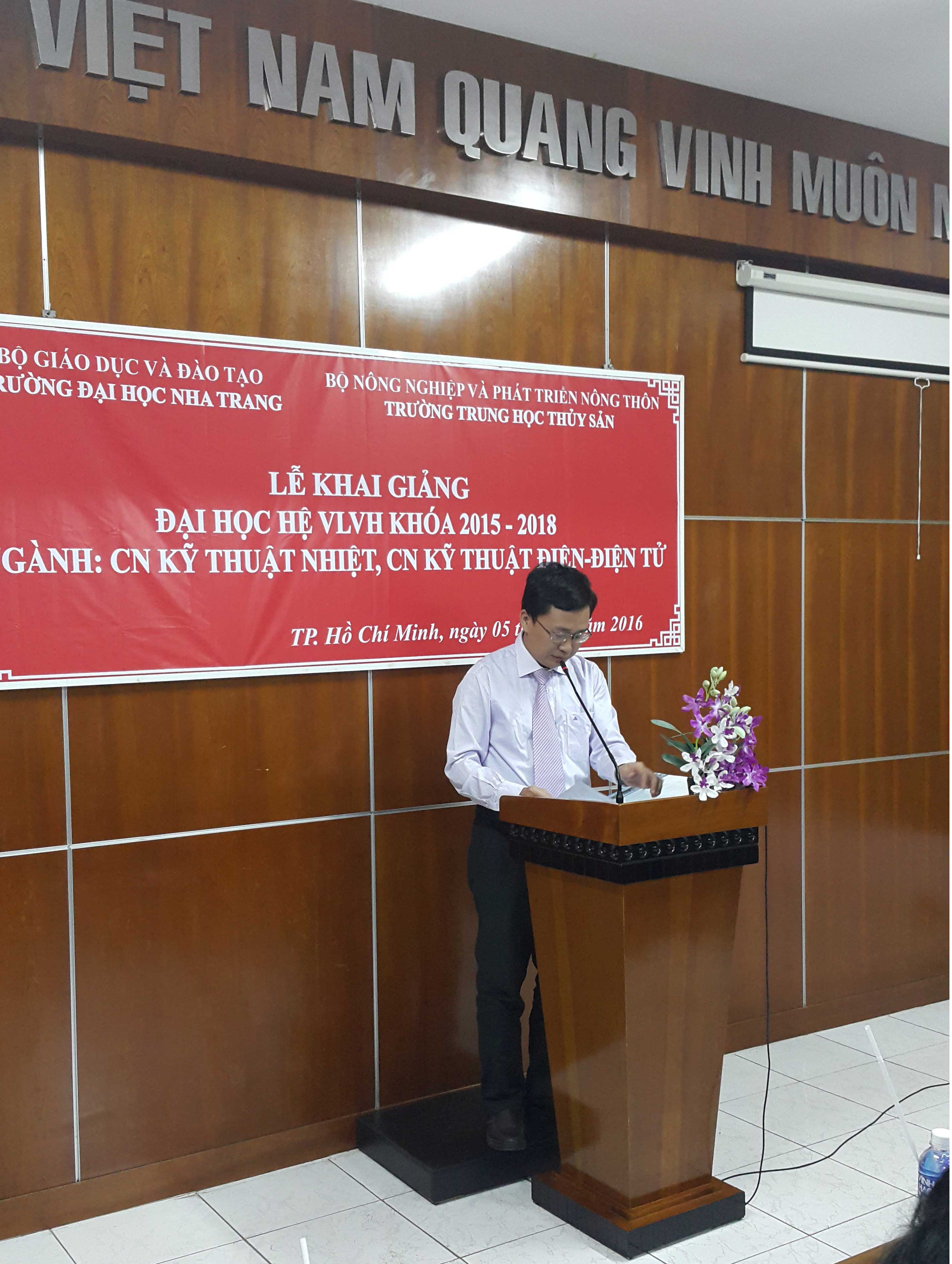 Ngày 05/3/2016, Trường Trung học Thủy sản phối hợp với Trường Đại học Nha Trang tổ chức Lễ khai giảng Khóa liên thông Đại học các ngành Công nghệ kỹ thuật nhiệt và Công nghệ kỹ thuật Điện - Điện tử. Đến dự có đại diện Ban giám hiệu Trường trung học Thủy sản cùng đại diện Trường Đại học Nha Trang và toàn thể học viên đã trúng tuyển đợt thi tuyển sinh thắng 12/2015.