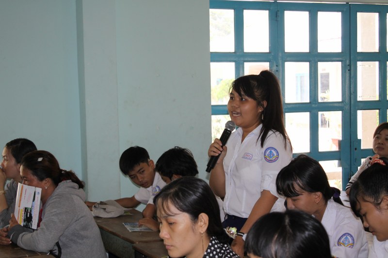 Đại diện trường Trung học Thủy sản giới thiệu về ngành nghề và chế độ chính sách cho học sinh THCS đi học Trung cấp.