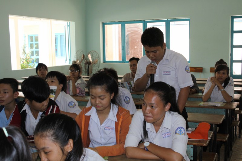 Nhiều học sinh đặt câu hỏi với Ban tư vấn về hướng đi học Trung cấp sau tốt nghiệp THCS.