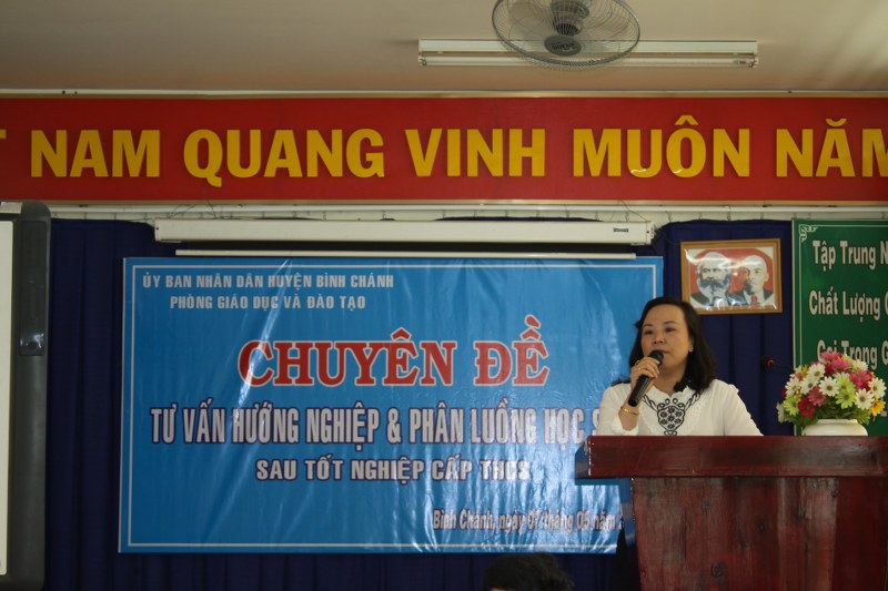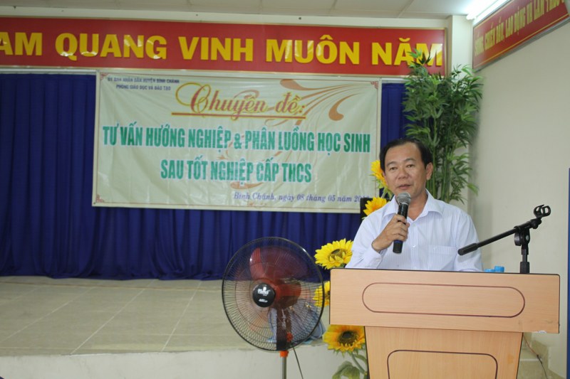 Ông Huỳnh Quốc Tuấn - Giám đốc Trung tâm KTTH-HN Bình Chánh giới thiệu các hướng đi sau THCS