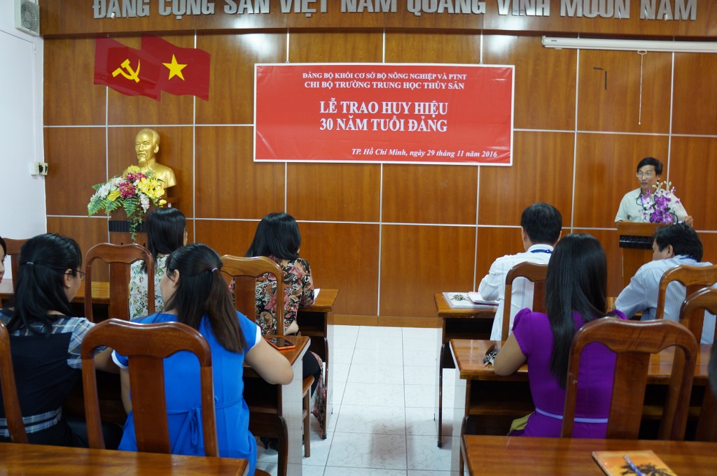 Ngày 29/11/2016, tại Chi bộ Trường Trung học Thủy sản diễn ra Lễ trao tặng Huy hiệu 30 năm tuổi Đảng cho đồng chi Ma Kiên Ích, Phó Bí thư Chi bộ, Trưởng phòng Công tác học sinh. Buổi lễ trao tặng có sự tham gia đầy đủ của tất cả các đồng chí Đảng viên trong Chi bộ.