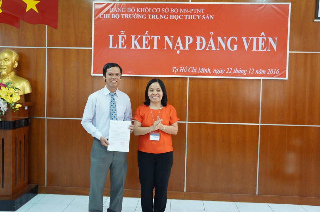 Ngày 22/12/2016, Chi Bộ Trường Trung học Thủy sản đã tổ chức làm lễ kết nạp Đảng viên cho quần chúng Lê Thái Tú Tiền, Ủy viên thường vụ Ban chấp hành Đoàn Trường Trung học Thủy sản. Đồng thời, Chi bộ cũng công bố quyết định kết nạp Đảng chính thức cho Đảng viên dự bị Nguyễn Thị Nhung. Bên cạnh đó, Chi bộ cũng tổ chức hợp mặt giao lưu với các đồng chí cựu chiến binh đang là cán bộ, giáo viên, công nhân viên trường nhân ngày thành lập Quân đội nhân dân Việt Nam (22/12/1944 - 22/12/2016)