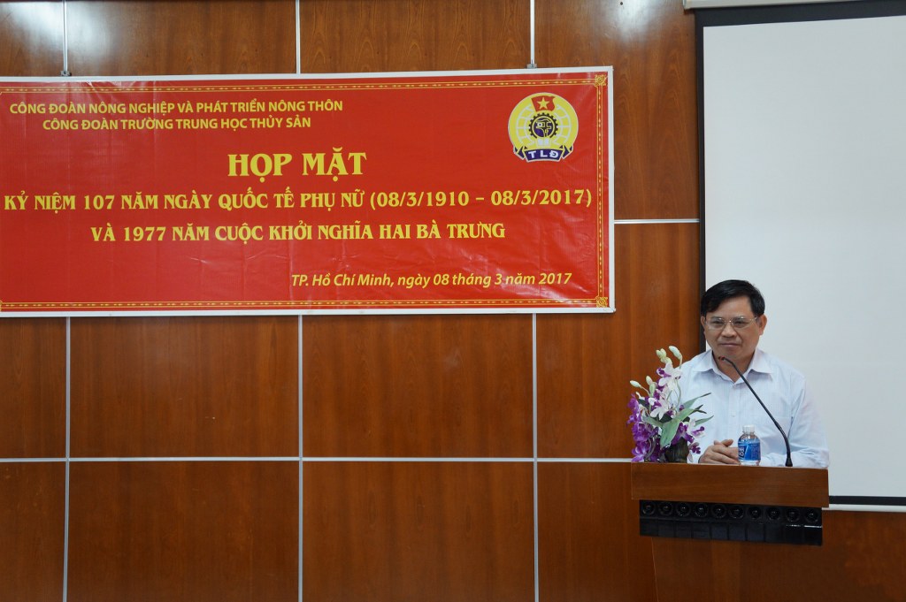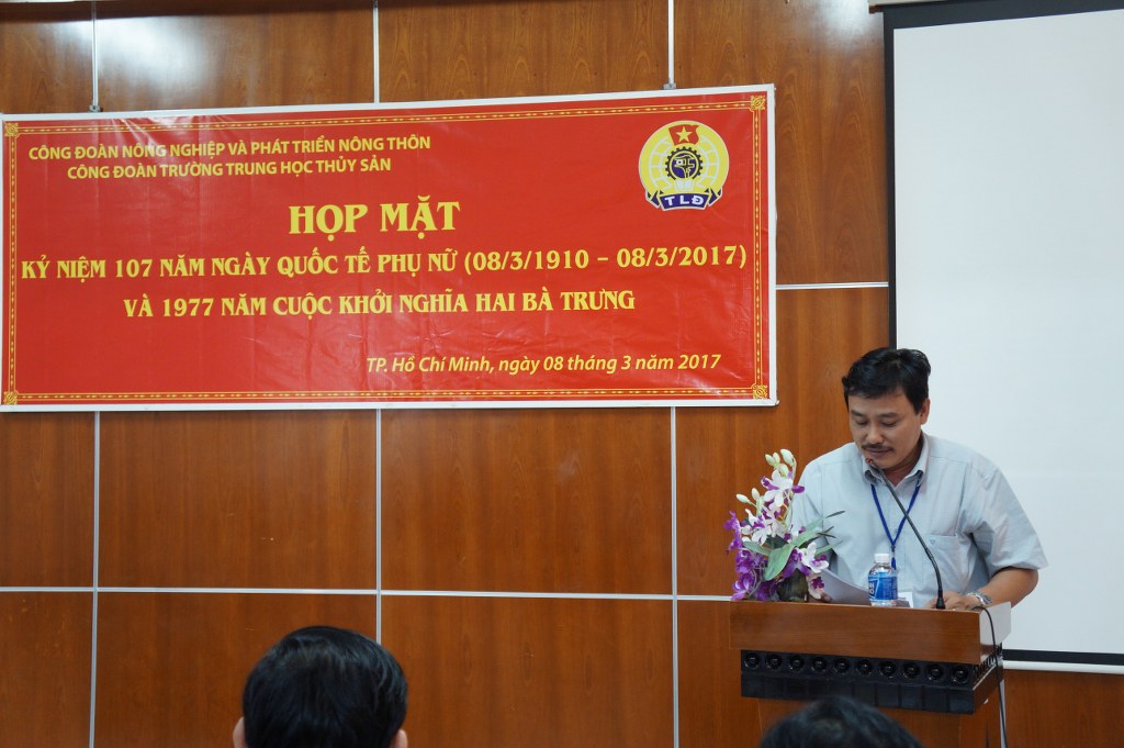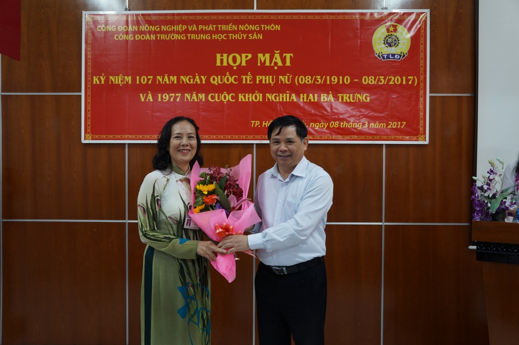 Nhân dịp kỷ niệm 107 năm Ngày Quốc tế Phụ nữ (08/03/1910 - 08/03/2017) và 1997 năm Cuộc khởi nghĩa Hai Bà Trưng, Công đoàn Trường Trung học Thủy sản đã tổ chức họp mặt truyền thống để ôn lại lich sử hình thành và nêu lên ý nghĩa của cuộc đấu tranh vì quyền lợi của người phụ nữ cũng như nêu lên vai trò của người phụ nữ trong thời đại mới.