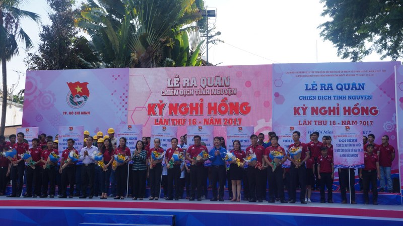 Sáng 9-7, Thành Đoàn TPHCM đã tổ chức lễ ra quân chiến dịch tình nguyện Kỳ nghỉ hồng lần thứ 16 năm 2017 tại Nhà văn hóa Thanh niên, quận 1, TPHCM.Chiến dịch tình nguyện Kỳ nghỉ hồng lần thứ 16 diễn ra từ ngày 9-7 đến 13-8-2017, dự kiến thu hút 50.000 lượt thanh niên công nhân thành phố tham gia.