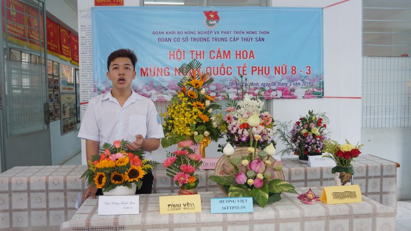Trong không khí tưng bừng chào mừng ngày Quốc tế Phụ nữ 8/3, tiến tới kỉ niệm 88 năm ngày thành lập Đoàn TNCS Hồ Chí Minh (26/3/1931 – 26/3/2019) sáng ngày 6/3/2019, Đoàn Thanh niên Trường Trung cấp Thủy sản đã tổ chức Hội thi cắm hoa với chủ đề “Phụ nữ Việt Nam”. Đến với Hội thi cắm hoa lần này, các đội thi đã có sự chuẩn bị hết sức công phu. Từ ý tưởng thiết kế đến các loại nguyên liệu đã được các đội bàn bạc, thảo luận hết sức kỹ càng nhằm đoạt giải cao về cho lớp mình. Hội thi còn là một sân chơi bổ ích, là nơi để các đội thi thể hiện tinh thần đầy sáng tạo của mình, qua đó mở rộng sự giao lưu, trao đổi kinh nghiệm, thắt chặc sự đoàn kết giữa các chi đoàn.