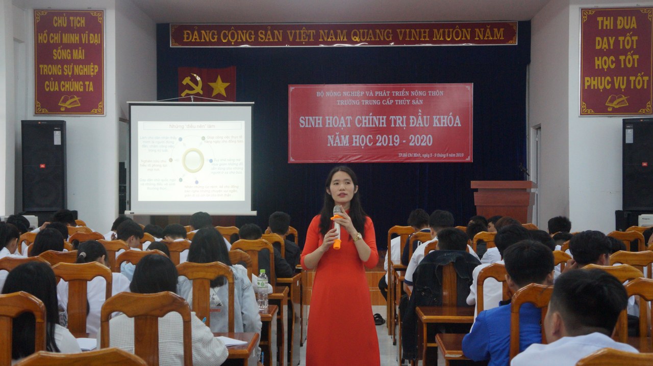 Từ ngày 05/8/2019 đến ngày 09/8/2019 Trường Trung cấp Thủy sản đã tổ chức tuần lễ sinh hoạt chính trị đầu khóa năm học 2019 - 2020 cho học sinh khóa 36 mới nhập học. Nội dung sinh hoạt gồm các chuyên đề chính trị, quốc phòng, an ninh, trật tự xã hội, phòng chống tệ nạn xã hội. Bên cạnh đó là các nội dung về nội quy trường lớp, quy chế đào tạo cũng được trường phổ biến cho học sinh. Đoàn Thanh niên cũng kết hợp sinh hoạt các chuyên đề về tư vấn ngành nghề, tư vấn việc làm, chuyên đề văn hóa ứng xử trong Trường học...
