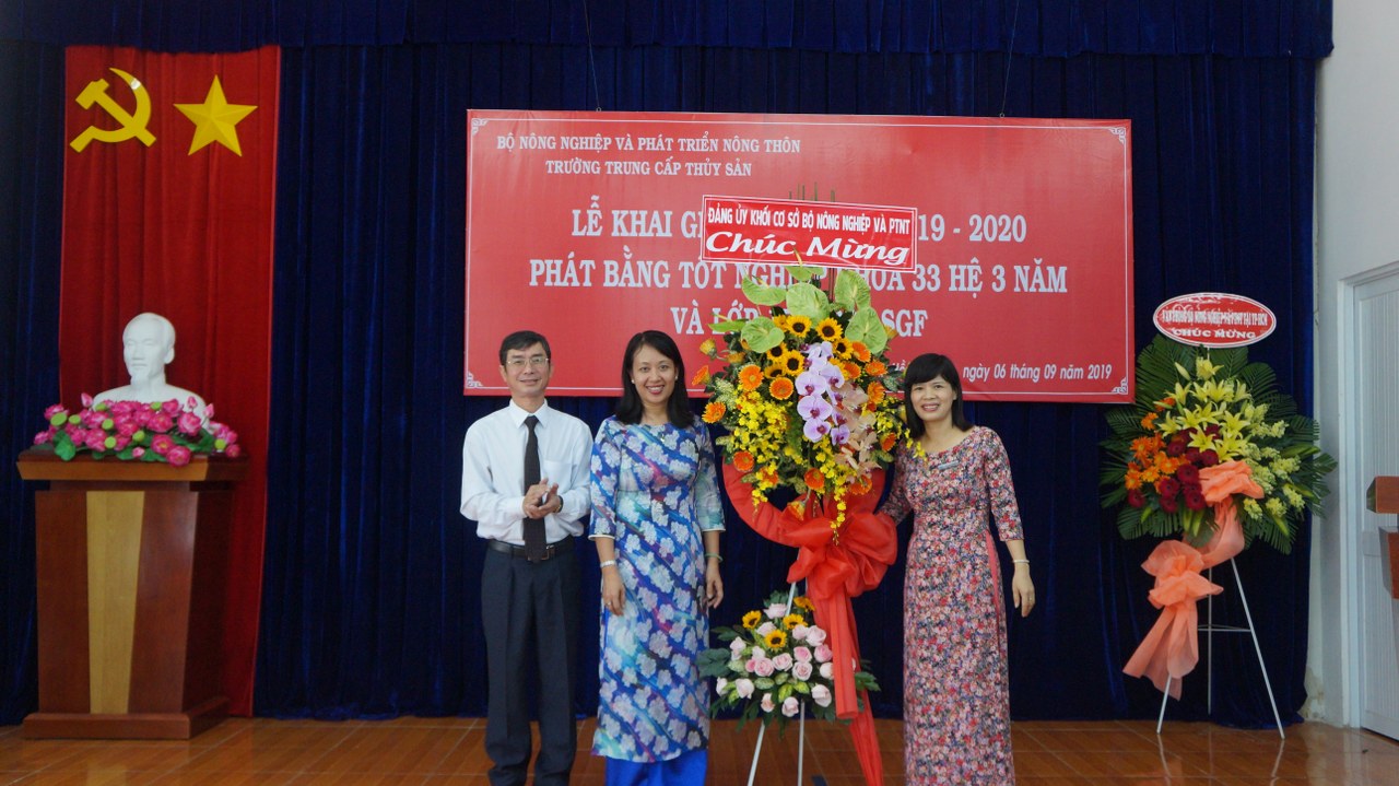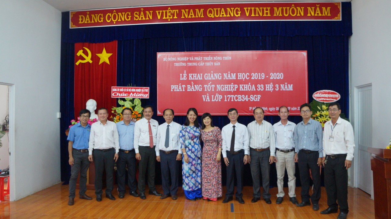 Ngày 06/9/2019, hòa trong không khí tưng bừng của cả nước chào mừng năm học mới, Trường Trung cấp Thủy sản long trọng tổ chức Lễ khai giảng năm học 2019 - 20120. Cũng trong dịp này Trường tổ chức phát bằng Tốt nghiệp cho học sinh Khóa 33 (hệ 3 năm) và lớp 17TCB34-SGF.