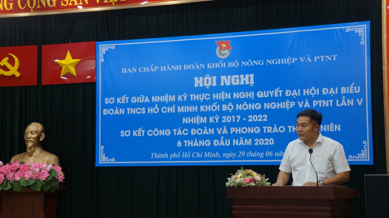 Ngày 29/6/2020, tại Hội trường Văn phòng Bộ NN&PTNT khu vực phía nam, đã diễn ra Hội nghị sơ kết giữa nhiệm kỳ thực hiện nghị quyết Đoàn TNCS Hồ Chí Minh Khối Bộ NN&PTNT nhiệm kỳ 2017 - 2022 và sơ kết công tác Đoàn và Phong trào Thanh niên 6 tháng đầu năm 2020.