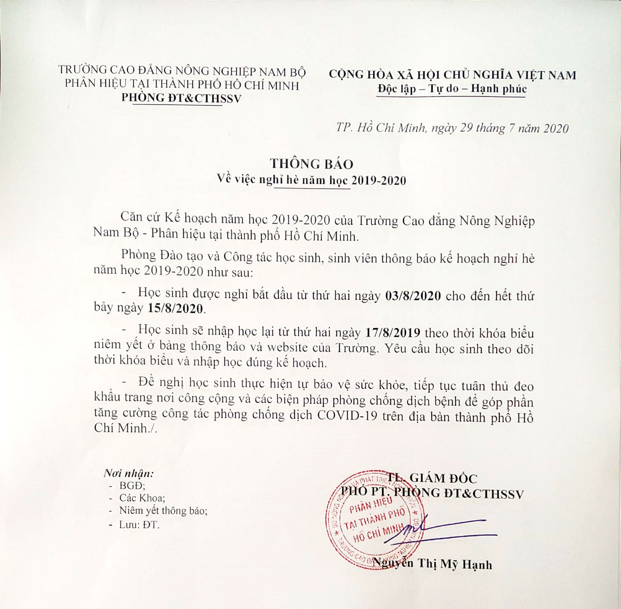 - Học sinh được nghỉ từ 03/8/2020 đến hết ngày 15/8/2020