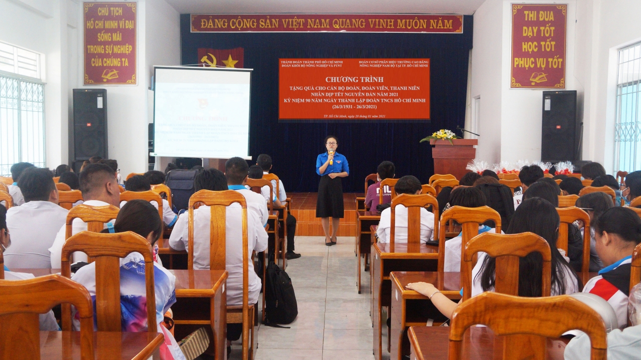Sáng ngày 28/01/2021, Đoàn Thanh niên Phân hiệu Trường Cao đẳng Nông nghiệp Nam Bộ tại TP.HCM phối hợp với Đoàn Khối Bộ Nông nghiệp và PTNT tổ chức phát quà Tết cho các bạn đoàn viên, học sinh – sinh viên xa nhà có hoàn cảnh khó khăn, bị ảnh hưởng bởi bão, lũ và dịch Covid-19.