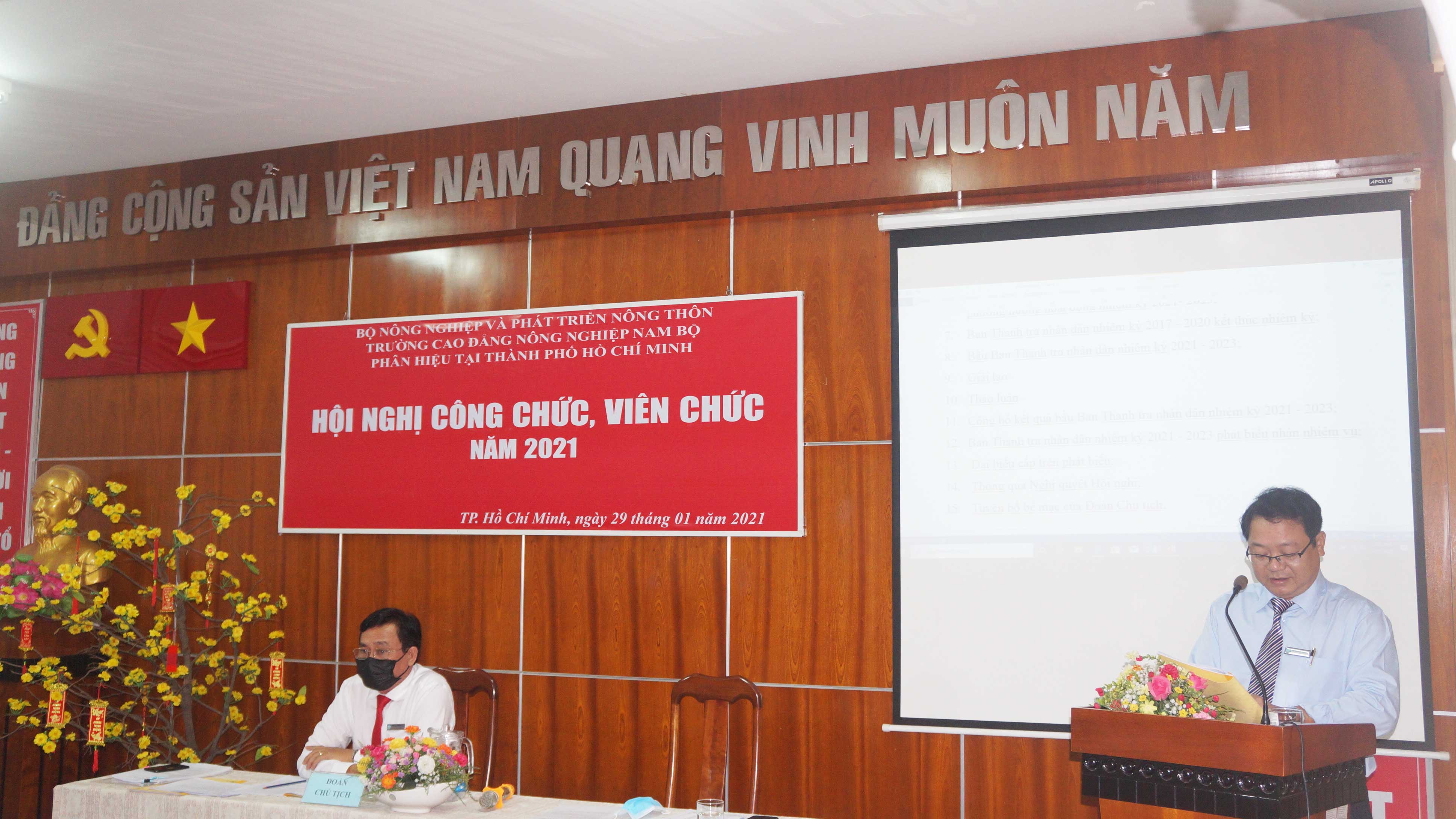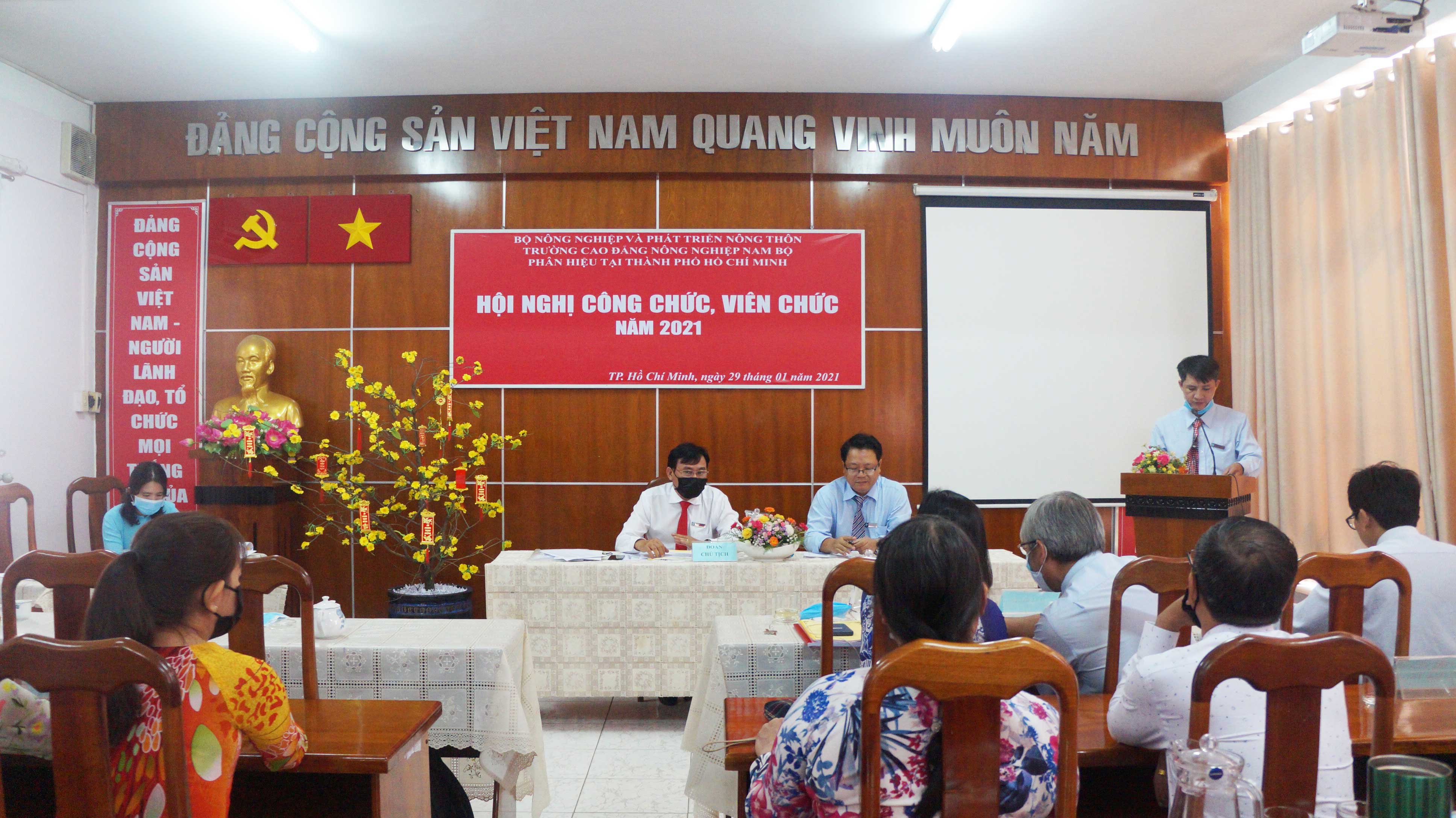 Ngày 29/01/2021, Phân hiệu Trường Cao đẳng Nông nghiệp Nam Bộ tại TP.HCM đã tổ chức Đại hội Công chức viên chức. Đại hội đã nghe báo cáo tổng kết năm 2020 và phương hướng nhiệm vụ năm 2021. Bên cạnh đó, Đại hội cũng thông qua một số quy chế, quy định về các hoạt động của Trường. Đại hội cũng tiến hành bầu Ban Thanh tra nhân dân nhiệm kỳ 2021 - 2023