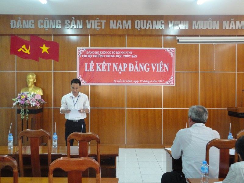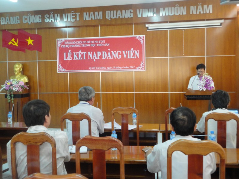 Ngày 19/6/2012, tại hội trường Trung học Thủy sản Chi Bộ nhà Trường đã tổ chức làm lễ kết nạp Đảng viên cho quần chúng Bùi Văn Quyền, Phó Bí thư Đoàn Trường Trung học Thủy sản.