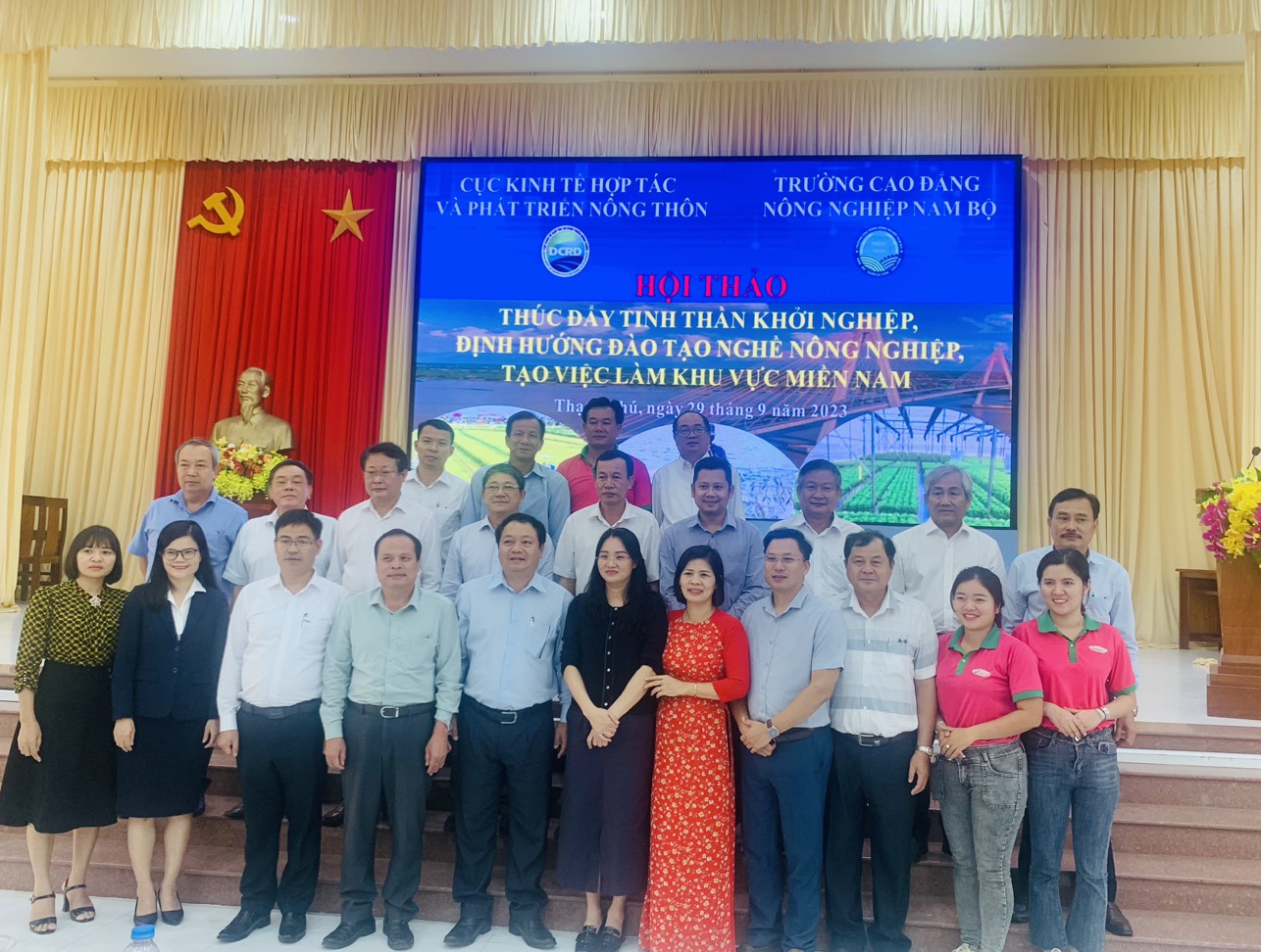 Sáng ngày 29/09/2023, tại huyện Thạnh Phú, tỉnh Bến Tre đã diễn ra Hội thảo thúc đẩy tinh thần khởi nghiệp, định hướng đào tạo nghề nông nghiệp, tạo việc làm khu vực Miền Nam. Chương trình do Cục Kinh tế hợp tác và Phát triển nông thôn phối hợp cùng Trường Cao đẳng Nông nghiệp Nam Bộ tổ chức.