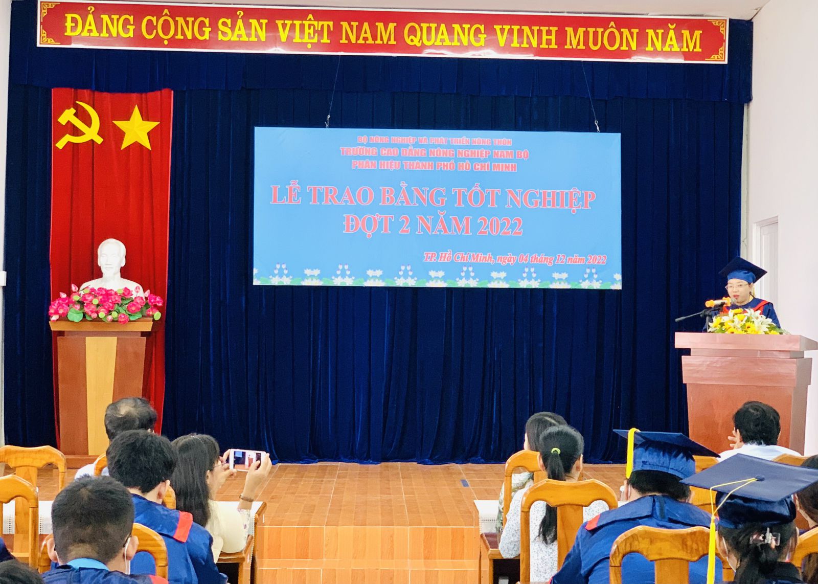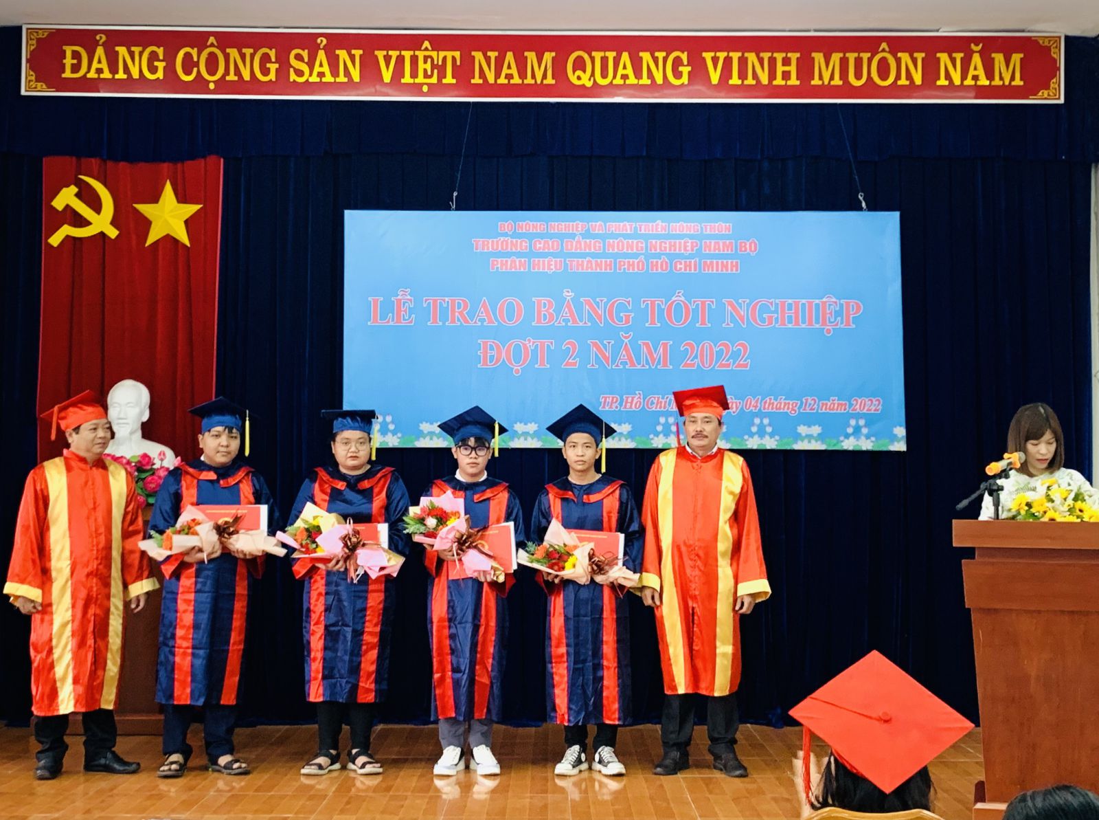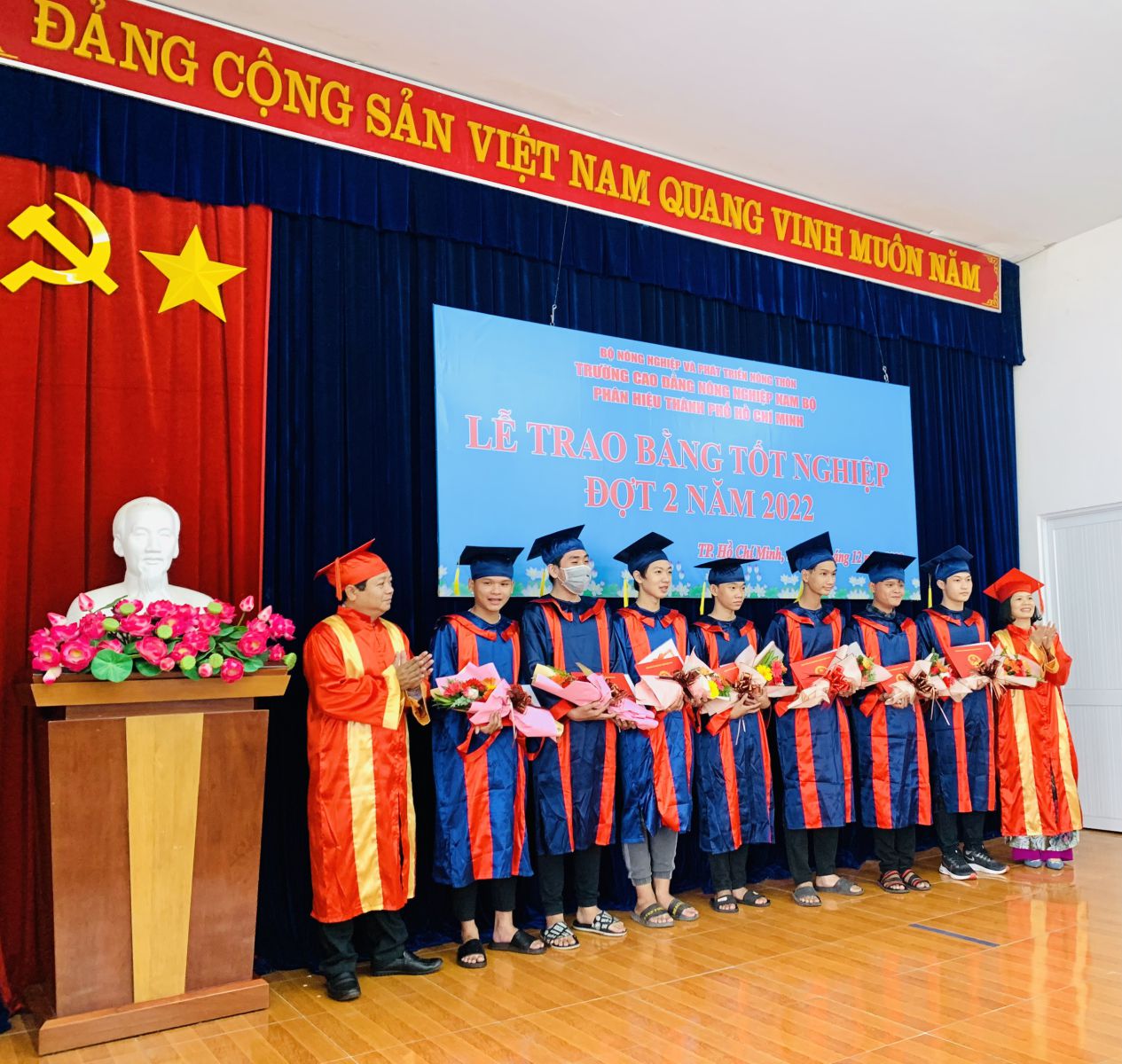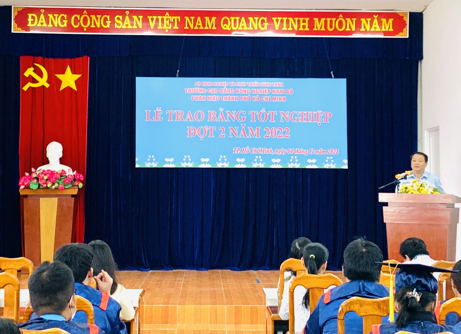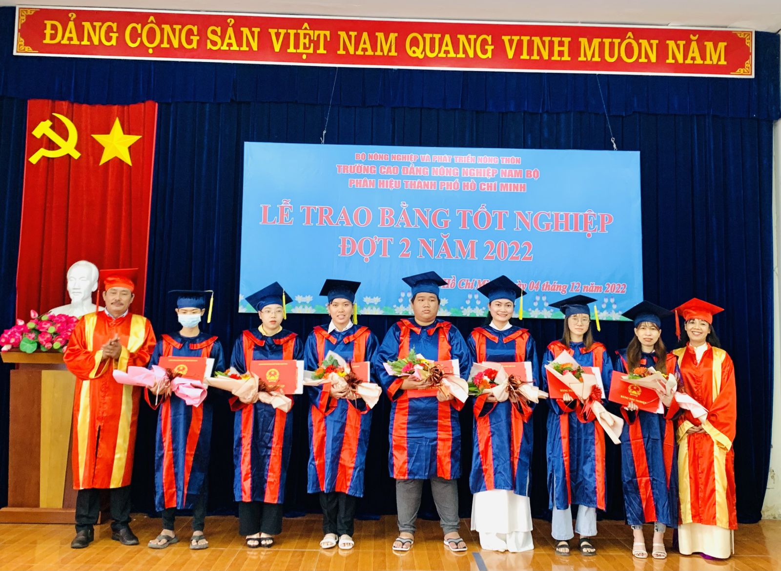Ngày 04/12/2022, tại Phân hiệu Trường CĐ Nông nghiệp Nam Bộ tại Tp.HCM tổ chức Lễ phát bằng tốt nghiệp Cao đẳng đợt 2 năm 2022 cho Sinh viên Cao đẳng khóa 2, tham dự lễ tốt nghiệp có đồng chí Nguyễn Tiến Huyền, Bí thư đảng ủy Trường, Hiệu trưởng, kiêm giám đốc Phân hiệu.