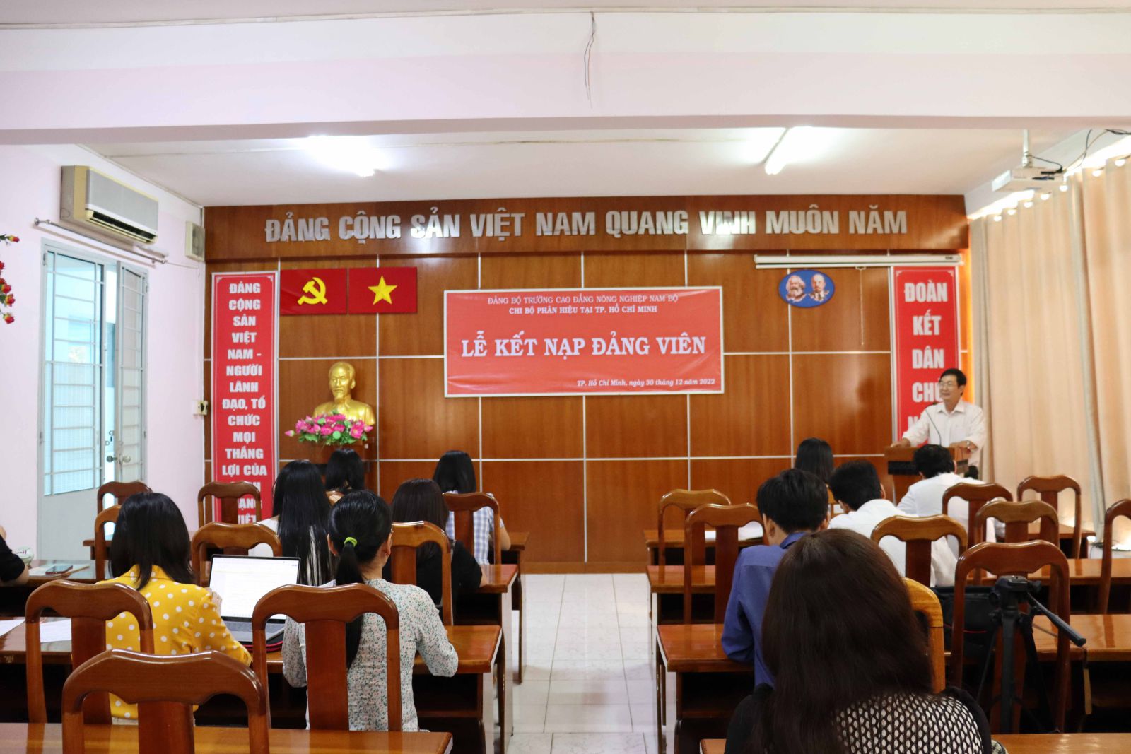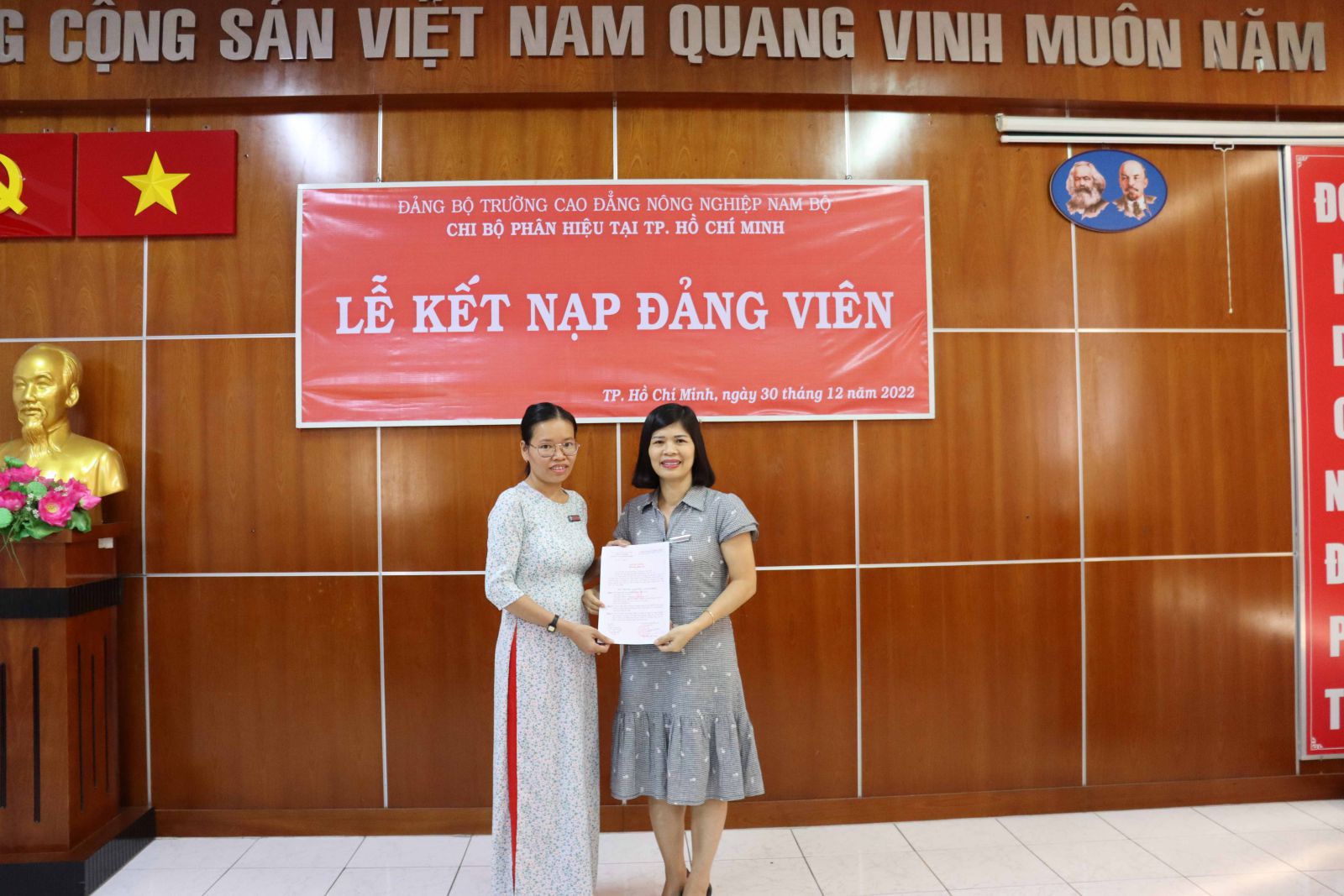 Ngày 30/12/2022, Chi bộ Phân hiệu Trường cao đẳng Nông nghiệp Nam Bộ tại Thành phố Hồ Chí Minh tổ chức kết nạp đảng viên mới cho quần chúng Bạch Thị Thu Cúc. Nhân dịp này, chi bộ cũng tổ chức xét chuyển đảng chính thức cho Đồng chí Nguyễn Thanh Hiền.
