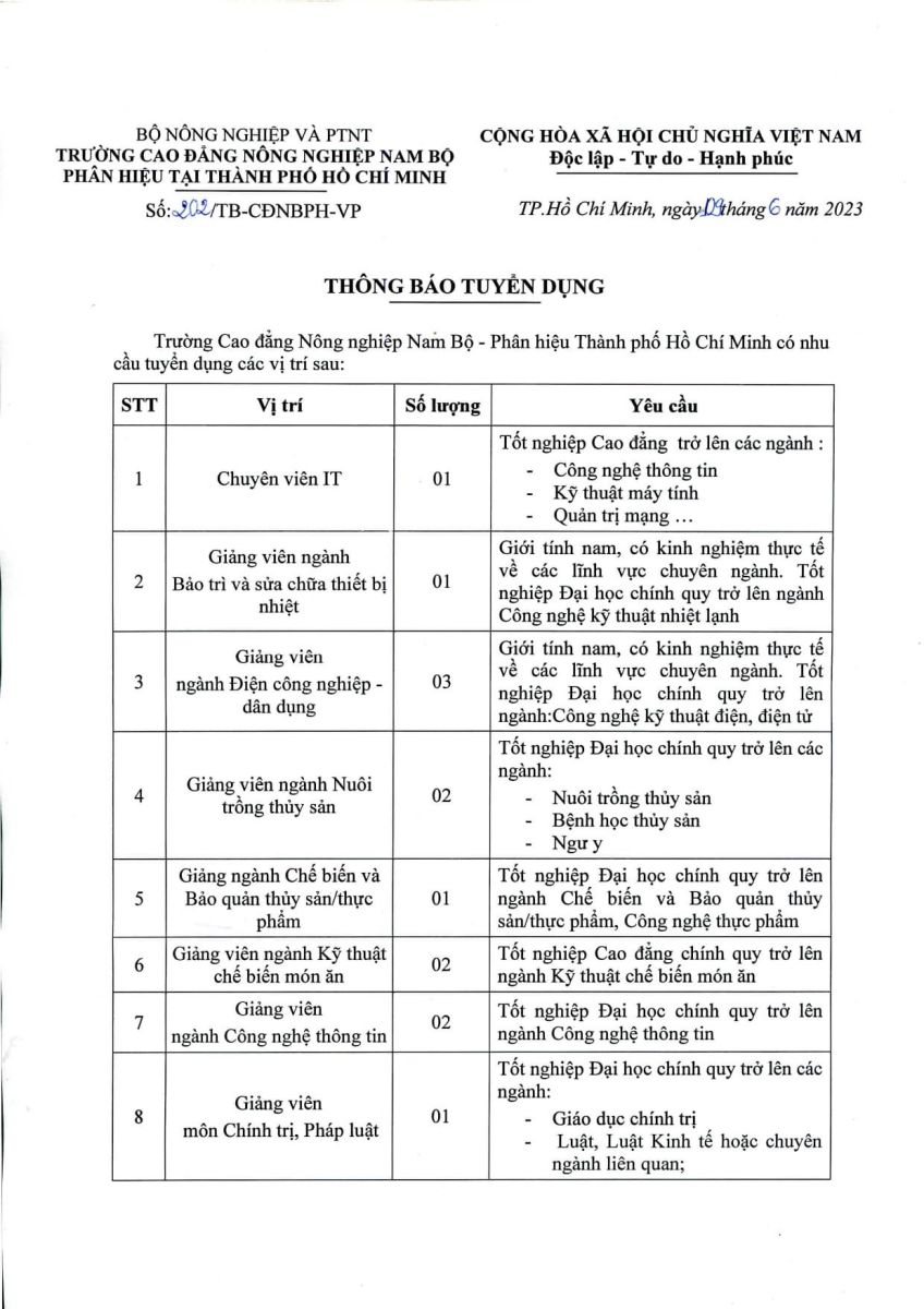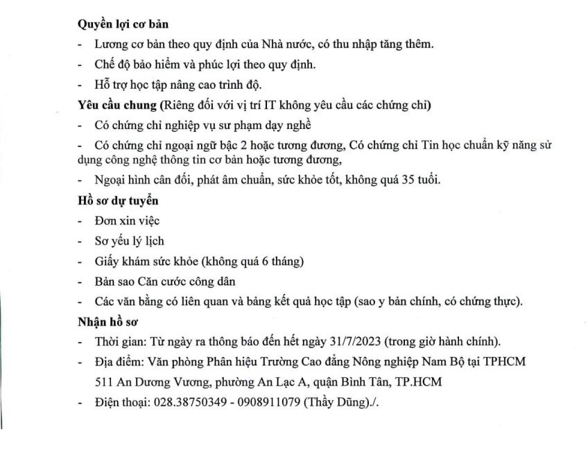 Trường Cao đẳng Nông nghiệp Nam bộ - Phân hiệu Thành phố Hồ Chí Minh Địa chỉ: 511 An Dương Vương, Phường An Lạc, Thành phố Hồ Chí Minh - ĐT: 028.3875.0349 - Fax: 028.3875.4004 - www.nbach.edu.vn