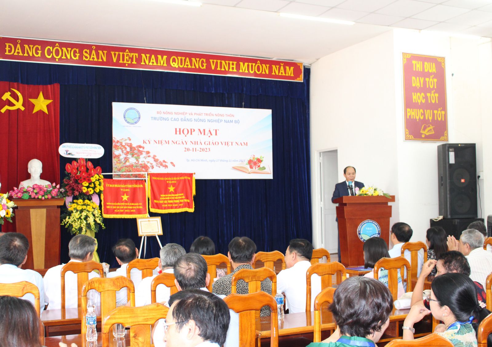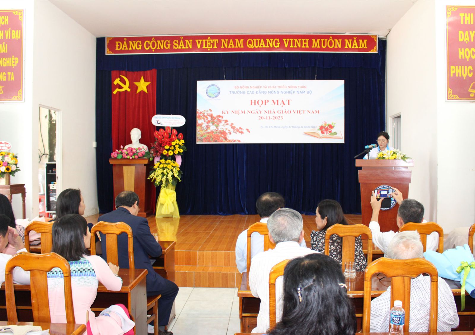 Ngày 17 tháng 11 năm 2023, Phân hiệu Trường CĐ Nông nghiệp Nam Bộ tại TP.HCM tổ chức Họp mặt Ngày Nhà Giáo Việt Nam 20/11. Đến dự buổi họp mặt có đồng chí Lê Viết Bình - Phó Chánh văn phòng, Trưởng đại diện khu vực phía Nam - Bộ NN&PTNT cùng nhiều đại biểu khách quý, Thầy Cô giáo, cán bộ công nhân viên của Trường qua các thời kỳ cùng tham dự.