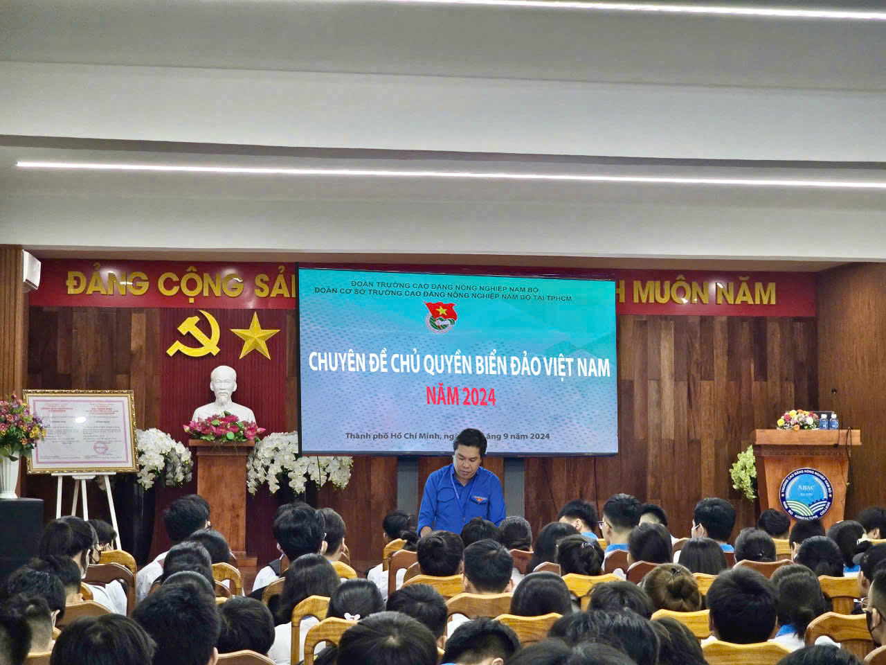 Để thế hệ trẻ có ý thức tốt hơn về việc bảo vệ chủ quyền biển, ngày 12/9/2024 Ban chấp hành Đoàn cơ sở Phân hiệu Trường Cao đẳng Nông nghiệp Nam Bộ đã tổ chức CHUYÊN ĐỀ CHỦ QUYỀN BIỂN ĐẢO VIỆT NAM NĂM 2024 . Tại buổi họp mặt các bạn đoàn viên thanh niên đã được nghe đồng chí Nguyễn Thanh Hiền - Phó bí thư Đoàn cơ sở Phân hiệu ôn lại vị trí địa lý chiến lược, vai trò lịch sử và quá trình xác lập chủ quyền của nước ta; qua đó càng khẳng định thêm tầm quan trọng chiến lược của biên đảo Việt Nam trong thời kỳ mới.
