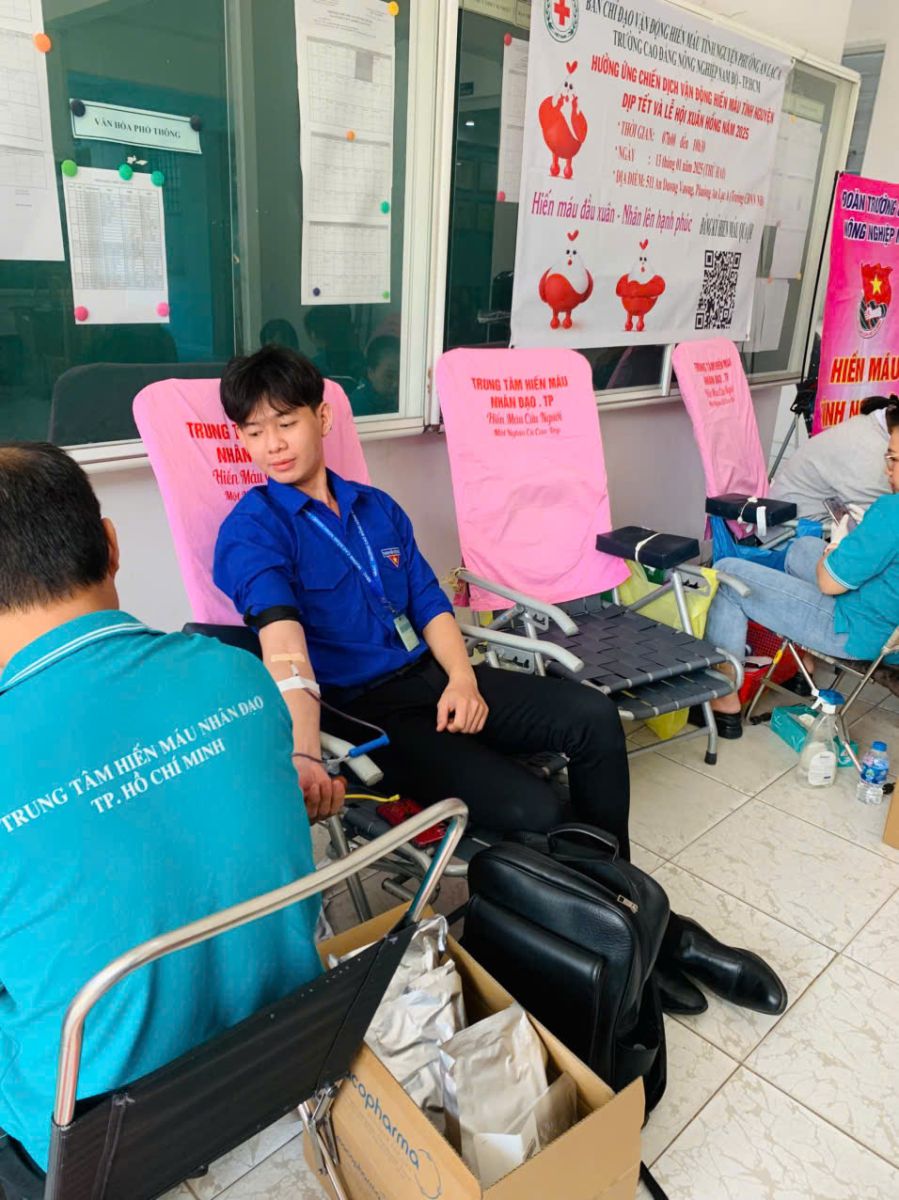 Hưởng ứng chiến dịch "Lễ Hội Xuân Hồng" , sáng ngày 13 tháng 01 năm 2025, Đoàn thanh niên Phân hiệu Trường Cao đẳng Nông nghiệp Nam Bộ đã phối hợp cùng Hội chữ thập đỏ Phường An Lạc A, vận động và tham gia hiến máu nhân đạo năm 2025. Với tổng 58 lượt hiến máu tình nguyện (bao gồm 1 ca 250ml, 57 ca 350ml)
