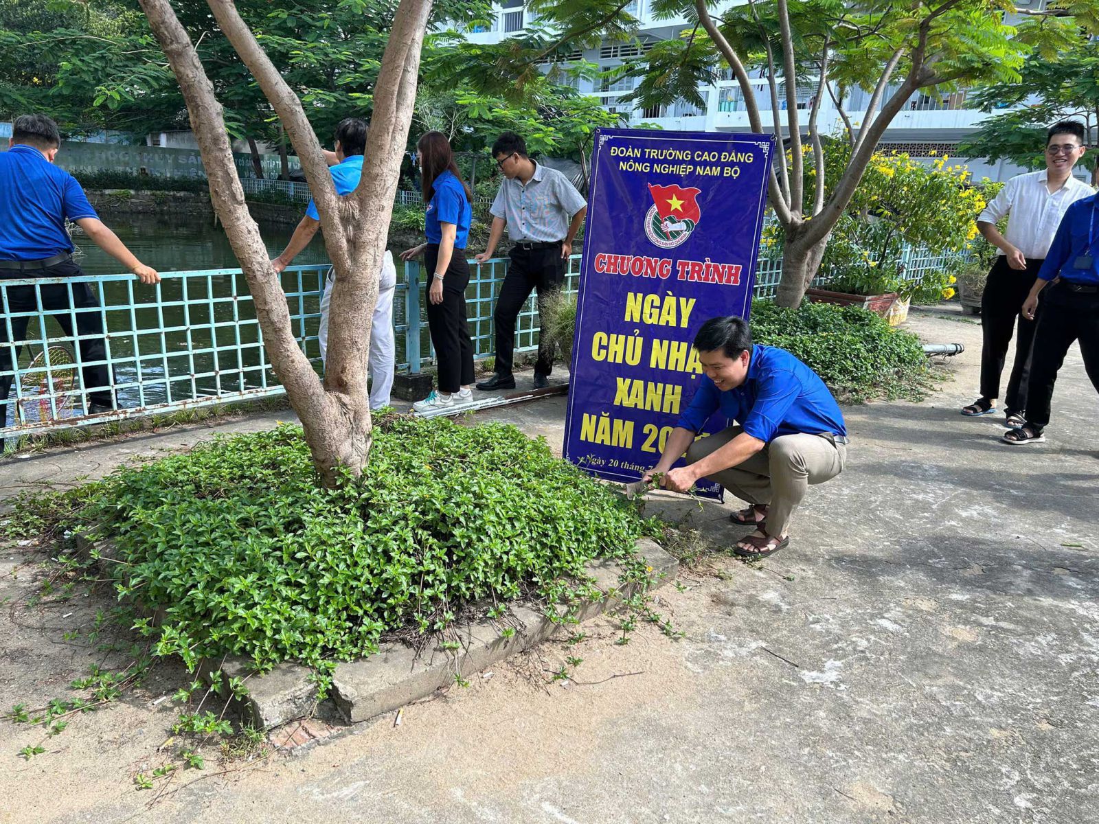 class="re_img" />Thực hiện nhiệm vụ công tác Đoàn và phong trào thanh niên năm học 2024-2025, ngày 20/7/2025 đoàn viên của Đoàn cơ sở Phân hiệu Trường Cao đẳng Nông nghiệp Nam Bộ tại Thành phố Hồ Chí Minh đã tổ chức hưởng ứng Ngày Chủ nhật xanh ra quân tổng dọn vệ sinh môi trường khu vực hồ nước Kí túc xá của Phân hiệu.