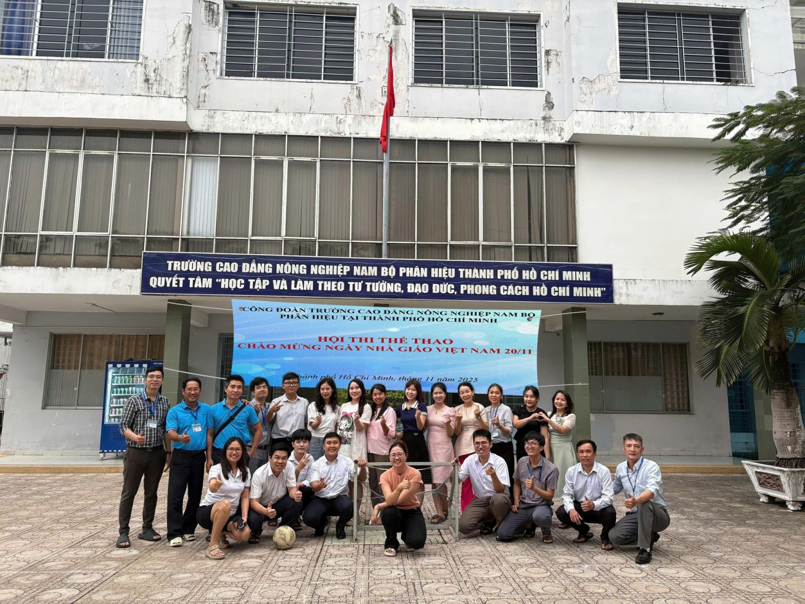 Hòa trong không khí tưng bừng, phấn khởi của cả nước hướng về Ngày Nhà giáo Việt Nam 20/11, Phân hiệu Trường Cao đẳng Nông nghiệp Nam Bộ tại TPHCM long trọng tổ chức Hội thi thể thao nhằm tạo sân chơi lành mạnh, vui tươi, gắn kết tập thể; đồng thời lan tỏa tinh thần “Khỏe để dạy tốt – Khỏe để cống hiến”.