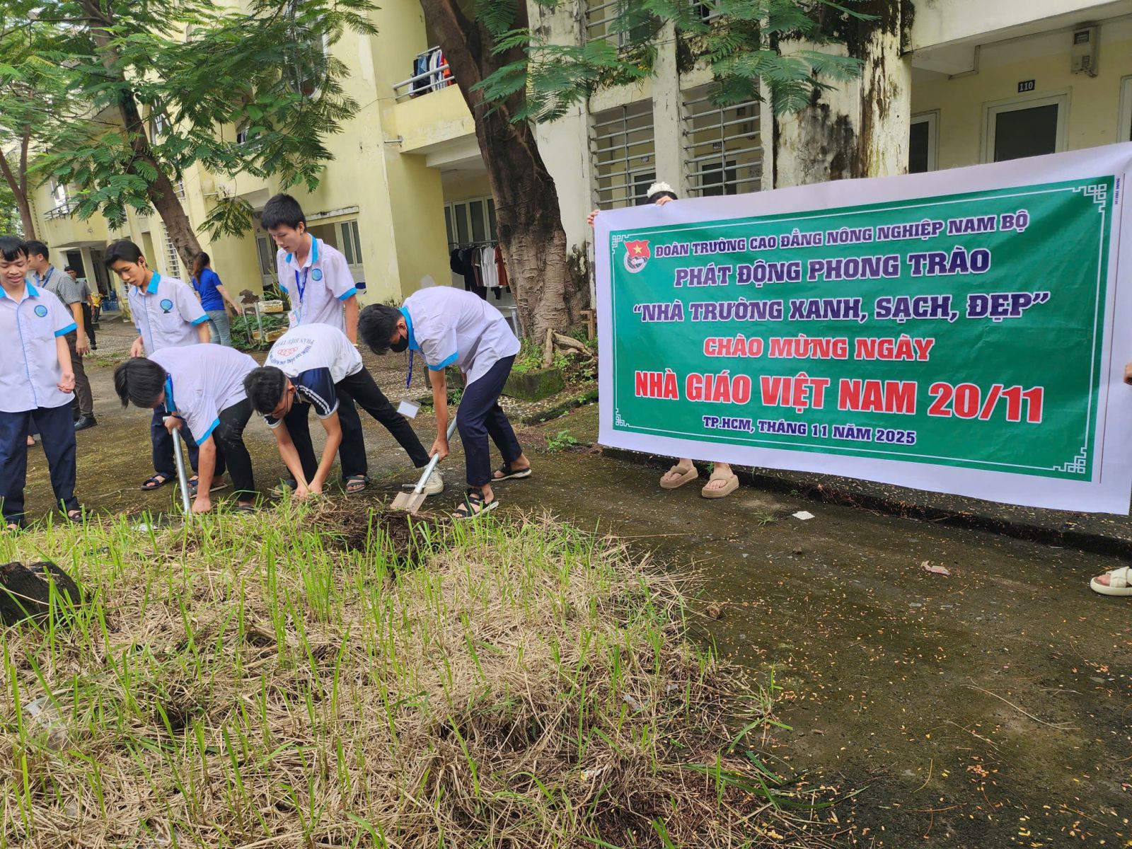 Hòa trong không khí chào mừng Ngày Nhà giáo Việt Nam 20/11, Đoàn Trường Cao đẳng Nông nghiệp Nam Bộ tổ chức phong trào “Nhà trường xanh, sạch, đẹp” nhằm tạo môi trường học tập thân thiện, trong lành và lan tỏa tinh thần bảo vệ môi trường trong học sinh, sinh viên.