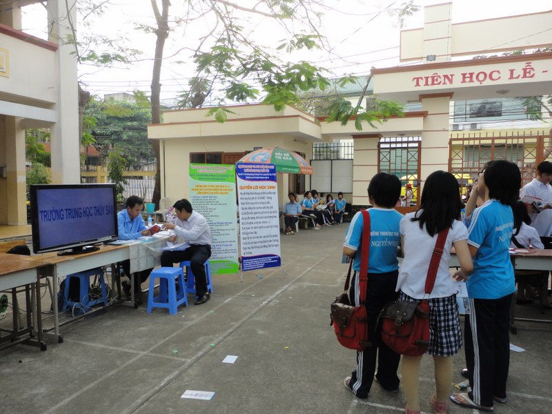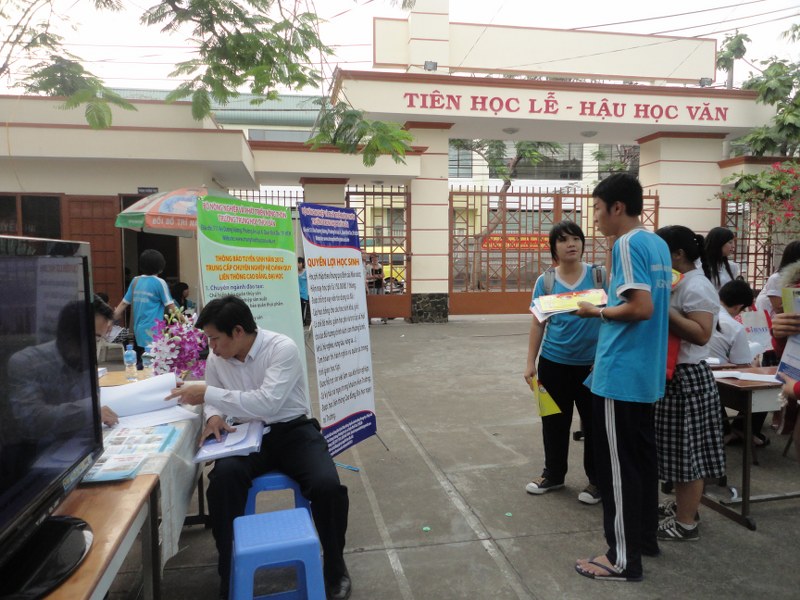 Gần 200 học sinh tham dự Ngày hội tư vấn tuyển sinh hướng nghiệp 2012 tại Trường THPT Nguyễn Hiền - Tp.HCM diễn ra chiều 11-2-2012. Trường Trung học Thủy sản cũng tham gia tư vấn tuyển sinh cho các bạn học sinh lớp 12 của Trường THPT Nguyễn Hiền, ngoài ra còn có sự tham gia của 15 trường trung cấp chuyên nghiệp, các trung tâm dạy nghề trong thành phố cùng tham dự.