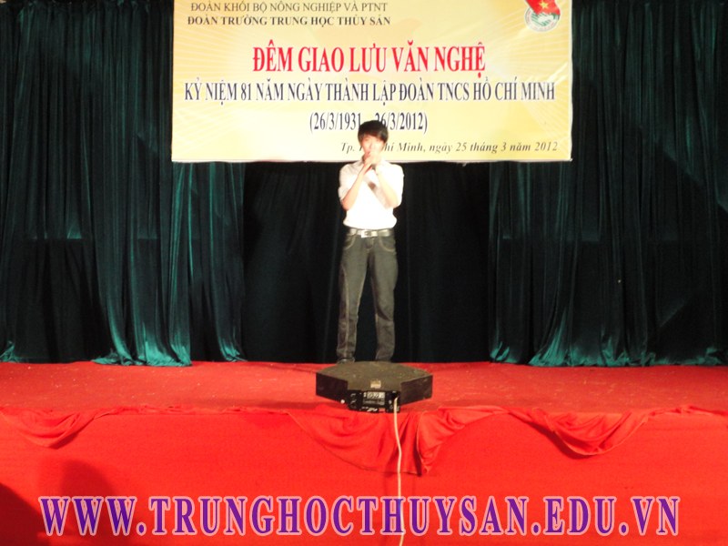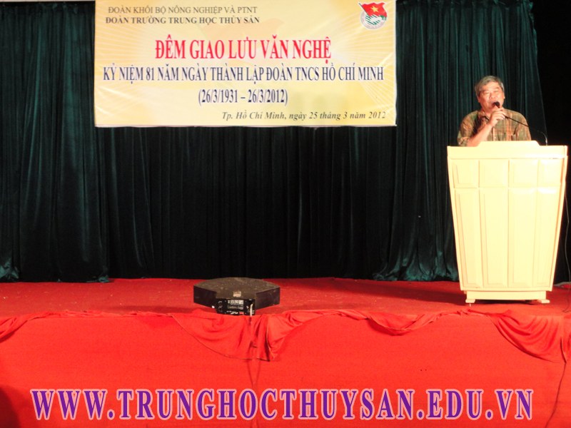 Đêm 25/3/2012 tại Trường Trung học Thủy sản đã diễn ra đêm giao lưu văn nghệ chào mừng kỷ niệm 81 năm ngày thành lập Đoàn Thanh niên cộng sản Hồ Chí Minh 26/3/1931 - 26/3/2012. Đến tham gia đêm giao lưu có sự tham gia của đại diện BCH Đoàn khối Bộ Nông nghiệp và phát triển nông thôn, BCH Đoàn Trường Lương Thực - Thực phẩm Tp.HCM, đại diện Cấp ủy, Ban giám hiệu, quý Thầy Cô giáo và hơn 200 học sinh của Trường Trung học Thủy sản.
