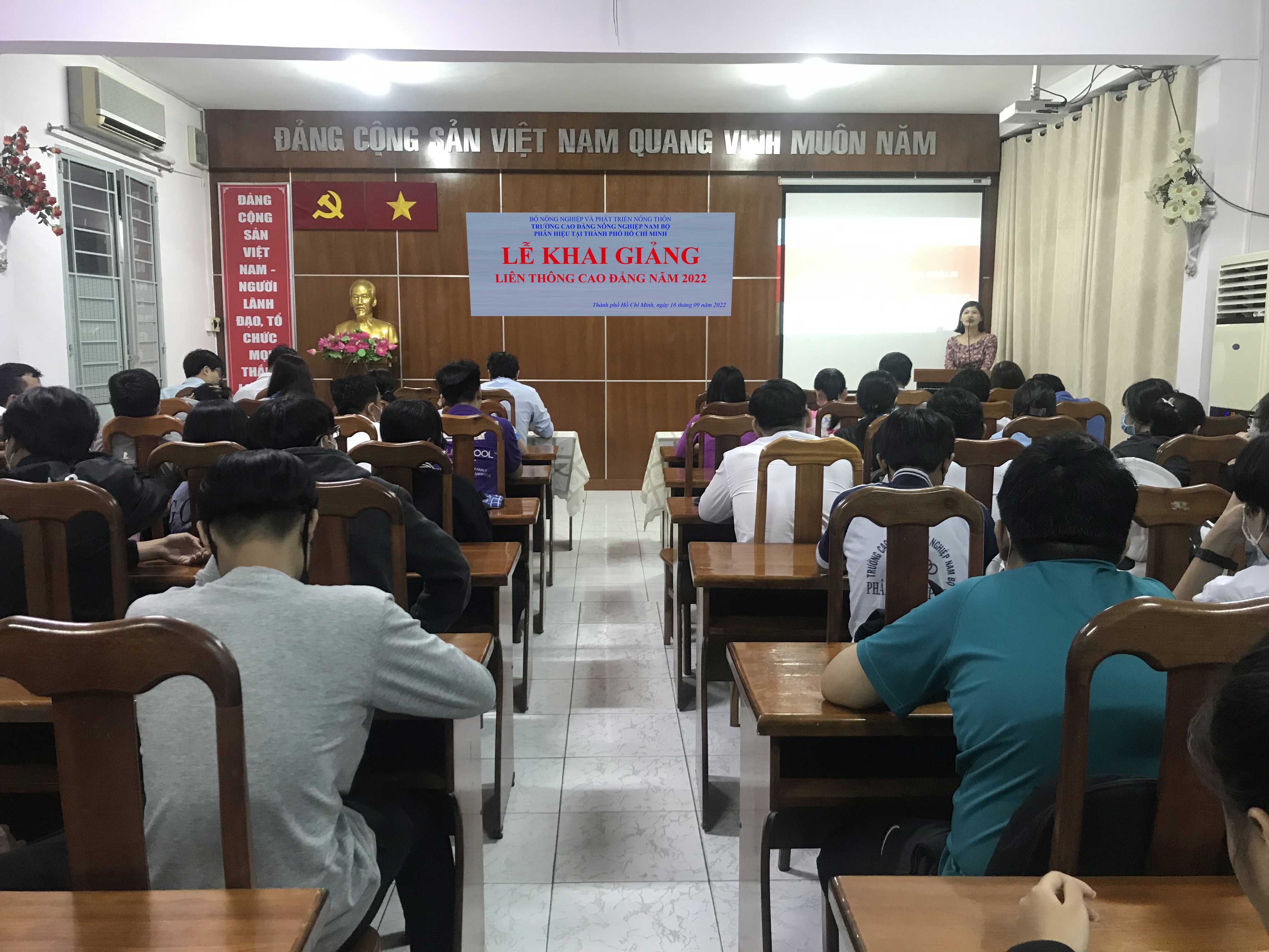 Ngày 05/10/2022, Phân hiệu Trường Cao đẳng Nông nghiệp Nam Bộ tại TP.HCM Khai giảng các lớp Liên thông ĐH năm 2022 phối hợp với Trường Đại học Nha Trang. Khóa học liên thông này, các bạn Sinh sẽ được học vào các buổi tối và Chủ nhật, chương trình học là 1,5 năm (tương đương 3 học kỳ).