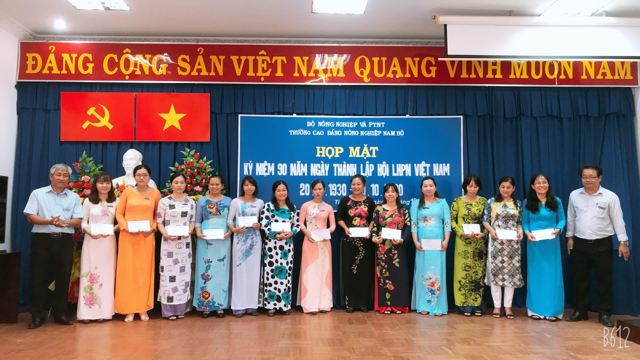 Ngày 20/10, Công đoàn cơ sở Trường Cao đẳng Nông nghiệp Nam Bộ tổ chức buổi Họp mặt kỷ niệm 90 năm ngày thành lập Hội Liên hiệp Phụ nữ Việt Nam (20/10/1930 - 20/10/2020). Đến dự buổi họp mặt có đồng chí Nguyễn Tiến Huyền, Bí thư Chi bộ, Hiệu trưởng nhà Trường, các đồng chí trong Ban giám hiệu, BCH Công đoàn Trường và toàn thể phụ nữ là cán bộ, giáo viên, công nhân viên toàn trường tham dự.