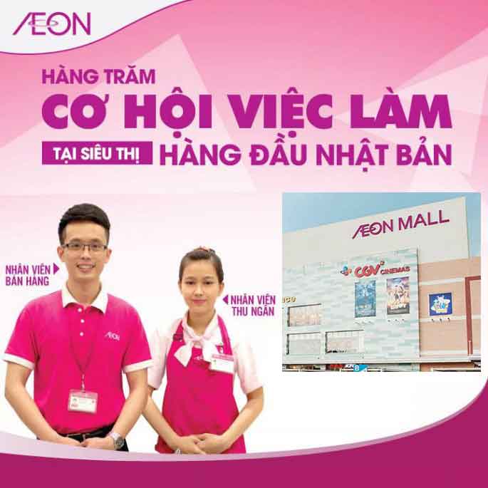 Siêu thị AEON Bình Tân tuyển dụng nhân viên bán hàng, hỗ trợ, tư vấn khách hàng. Thời gian làm việc theo ca 4-5 giờ/ngày, riêng thứ 7, chủ nhật có thể làm 8 giờ/ngày. Nhận hồ sơ trực tiếp tại văn phòng tuyển dụng của AEON Bình Tân hoặc Trường Trung học Thủy sản. Phỏng vấn trực tiếp. Hồ sơ photo, không cần công chứng.