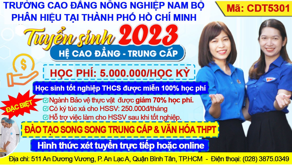 Phân hiệu Trường CĐ Nông nghiệp Nam Bộ tại TP.HCM thông báo tuyển sinh Cao đẳng chính quy 2023