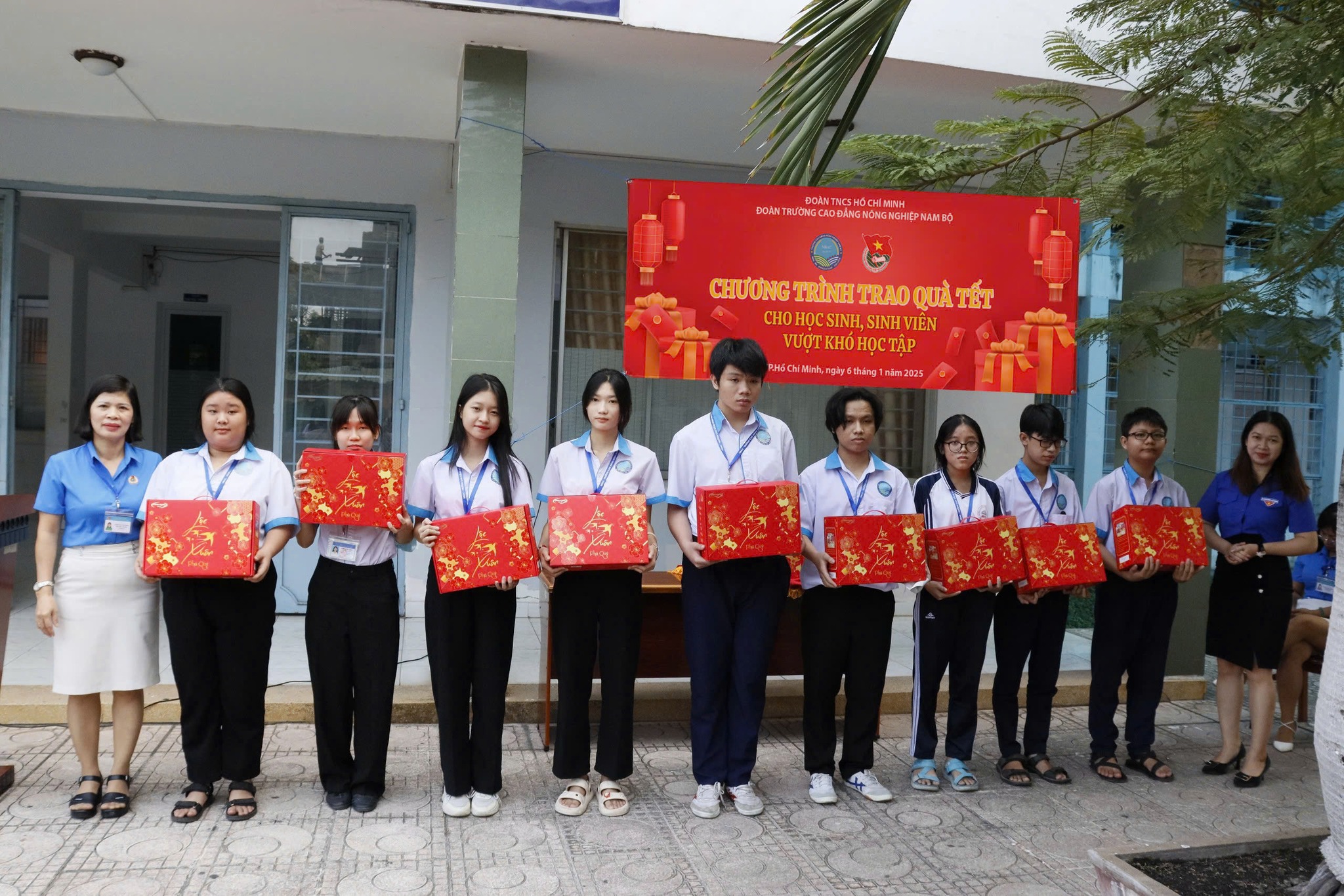 Thực hiện Kế hoạch năm học 2024 -2025 Đoàn Thanh niên Phân hiệu Trường cao đẳng Nông nghiệp Nam Bộ tại Thành phố Hồ Chí Minh tổ chức xét trao quà Tết cho học sinh, sinh viên có hoàn cảnh khó khăn vượt khó học tốt