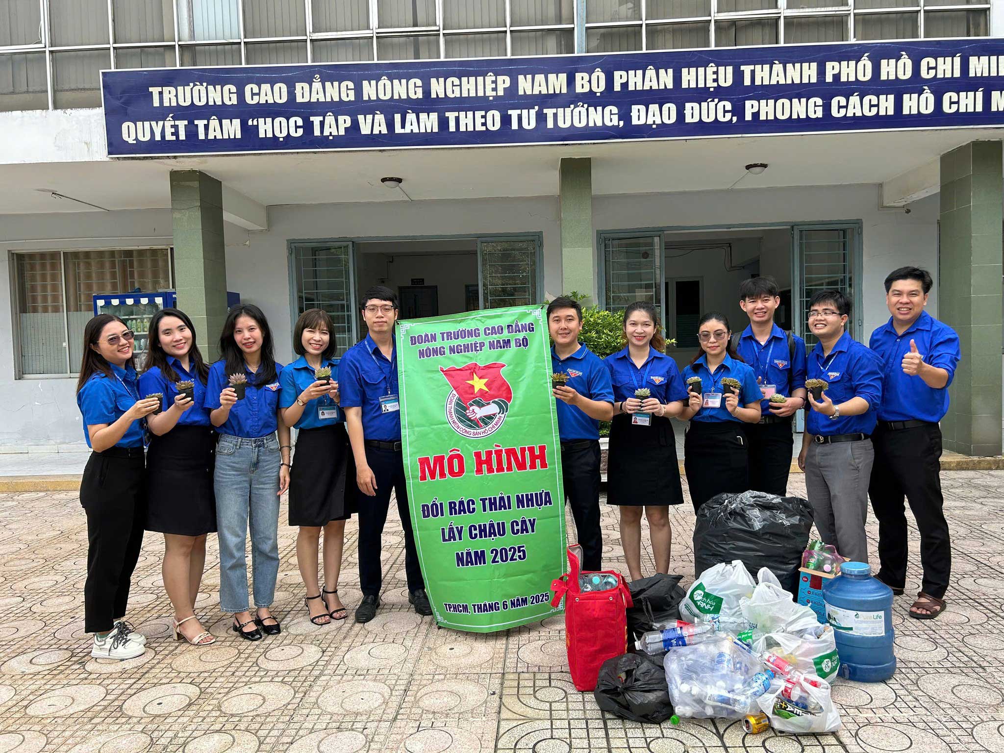 Thực hiện nhiệm vụ công tác Đoàn và phong trào thanh niên năm học 2024-2025 được sự cho phép của Đảng ủy - Ban Giám hiệu Nhà trường, trong tháng 6 năm 2025 Đoàn Trường Cao đẳng Nông nghiệp Nam Bộ tổ chức phát động Mô hình “Đổi chai nhựa lấy chậu cây “ hưởng ứng Ngày Môi trường Thế giới.