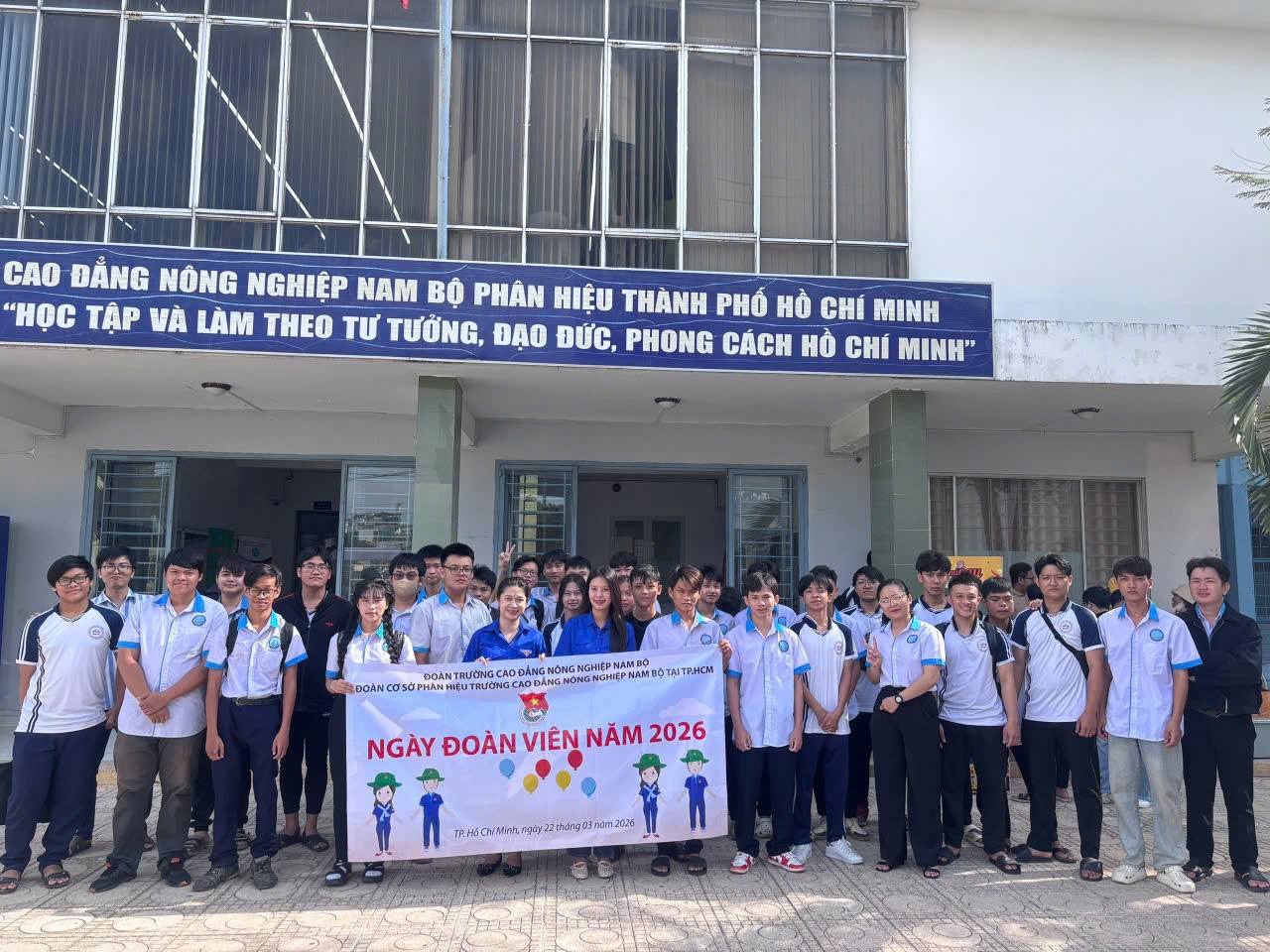 Ngày 21/03/2026, Đoàn cơ sở Phân hiệu Trường Cao đẳng Nông nghiệp Nam Bộ tại TP.HCM đã long trọng tổ chức buổi họp mặt kỷ niệm 05 năm Ngày thành lập Đoàn TNCS Hồ Chí Minh (26/3/1931 – 26/3/2026) trong không khí trang nghiêm, ấm áp và đầy ý nghĩa.