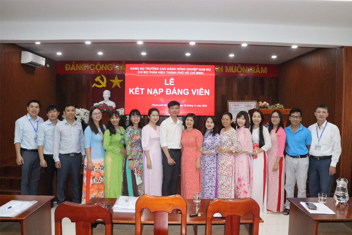 Sáng ngày 23 tháng 11 năm 2025, Phân hiệu Trường Cao đẳng Nông nghiệp Nam Bộ tại Thành phố Hồ Chí Minh tổ chức Lễ kết nạp Đảng viên mới cho quần chúng Trần Văn Chiến - Sinh viên lớp 16CĐ-Yb (Khoa Chăn nuôi Thú y), Uỷ viên Ban chấp hành Đoàn TNCS Hồ Chí Minh cơ sở Phân hiệu