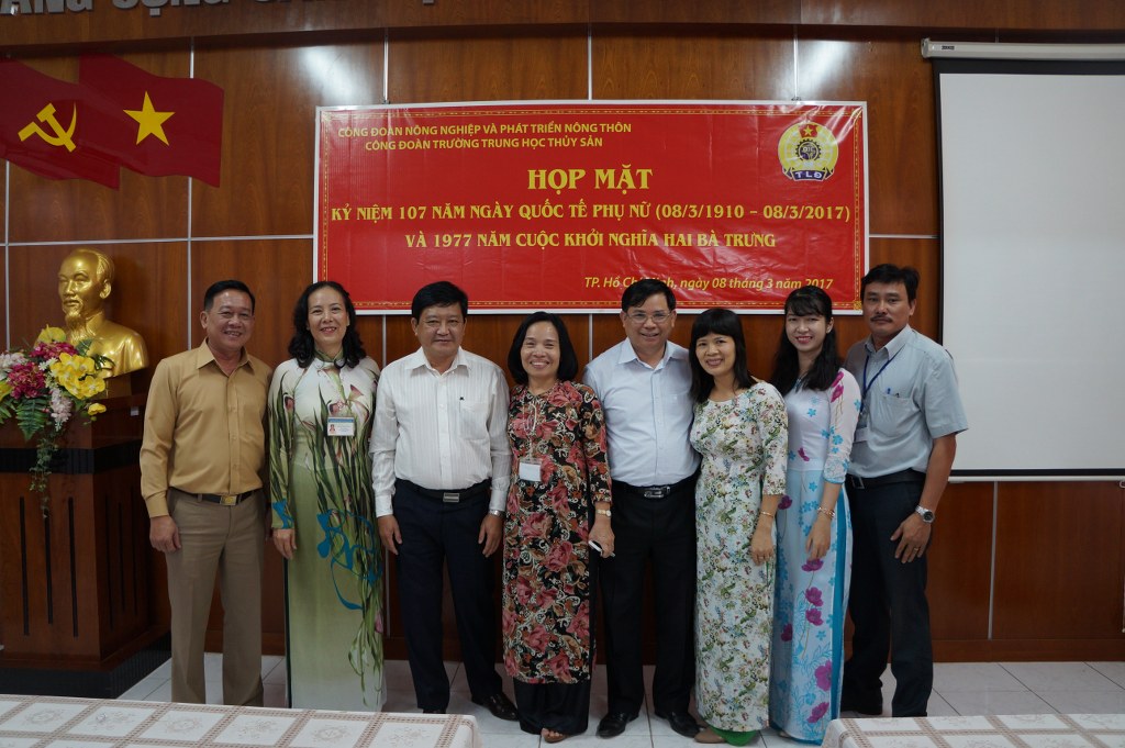 Nhân dịp kỷ niệm 107 năm Ngày Quốc tế Phụ nữ (08/03/1910 - 08/03/2017) và 1997 năm Cuộc khởi nghĩa Hai Bà Trưng, Công đoàn Trường Trung học Thủy sản đã tổ chức họp mặt truyền thống để ôn lại lich sử hình thành và nêu lên ý nghĩa của cuộc đấu tranh vì quyền lợi của người phụ nữ cũng như nêu lên vai trò của người phụ nữ trong thời đại mới.